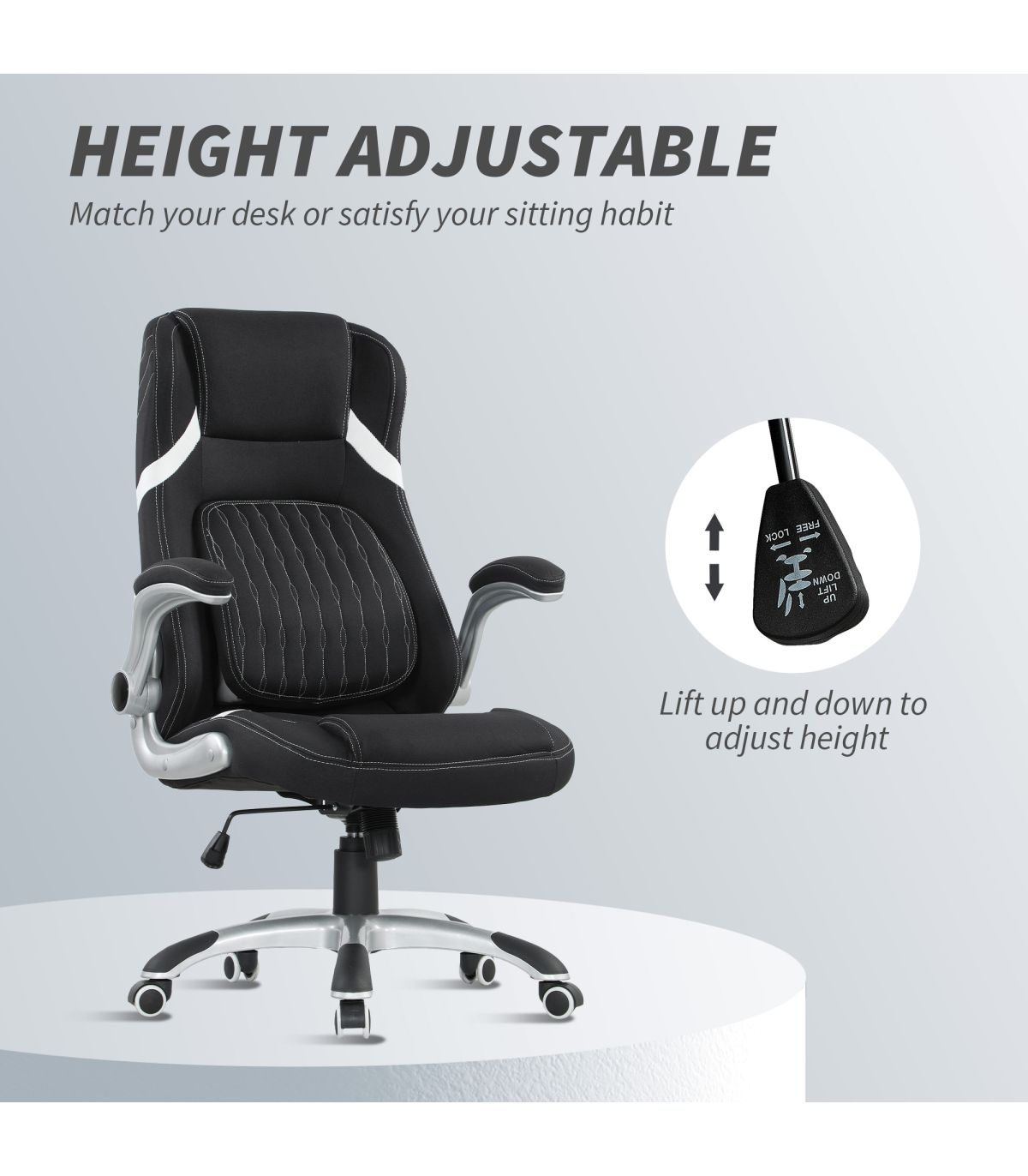 Vinsetto Fabric Office Desk Chair w/ Adjustable Height Tilt Function Black