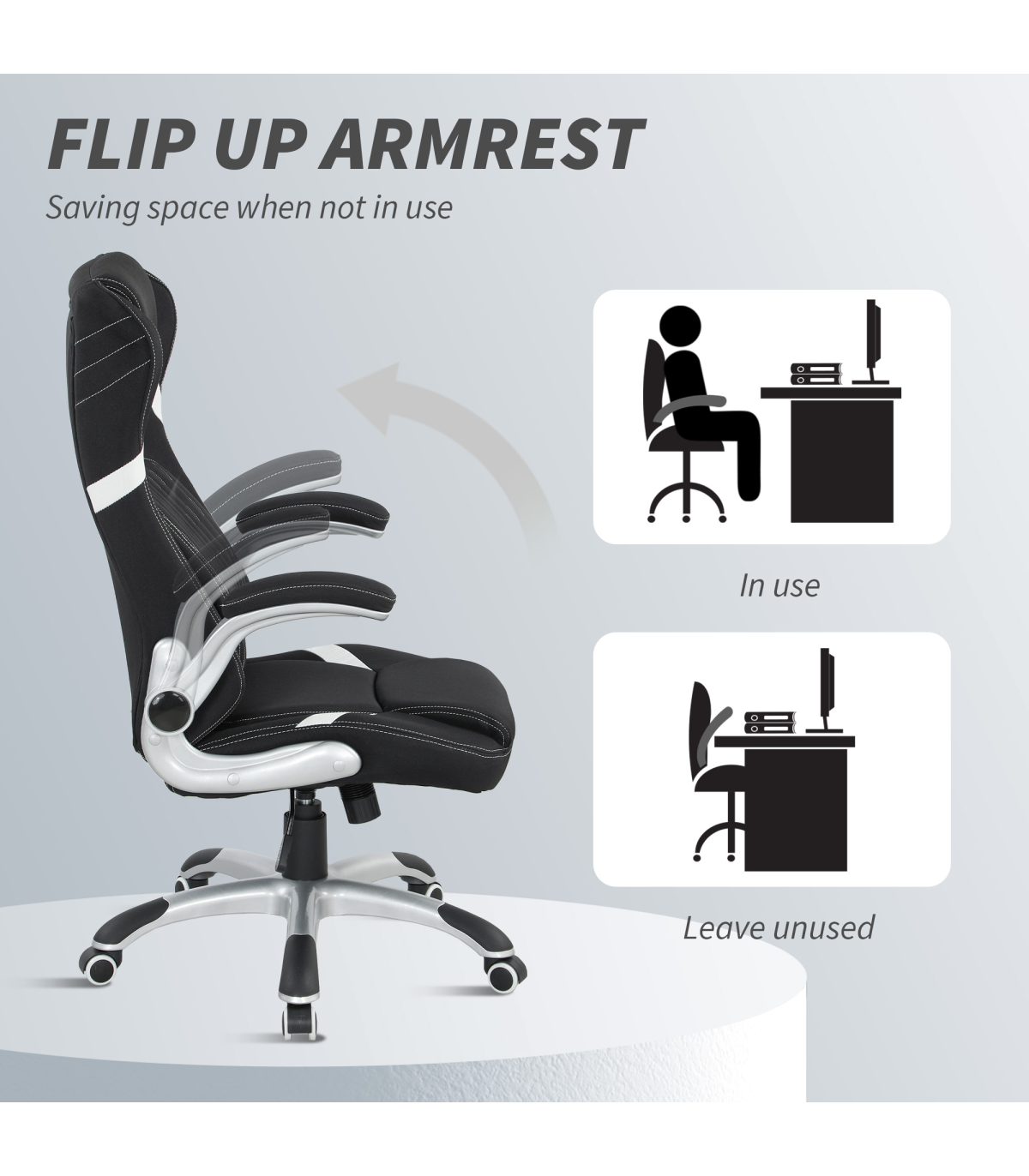 ? Flip-up armrests make work chair easy to fit underneath tables