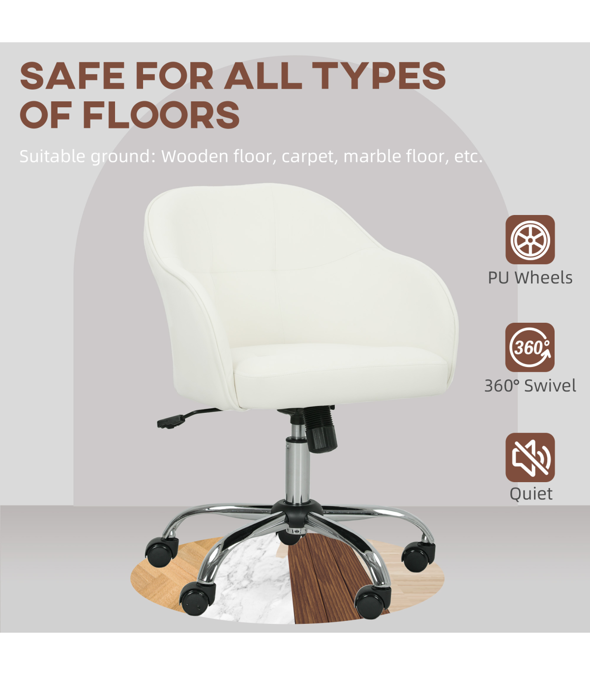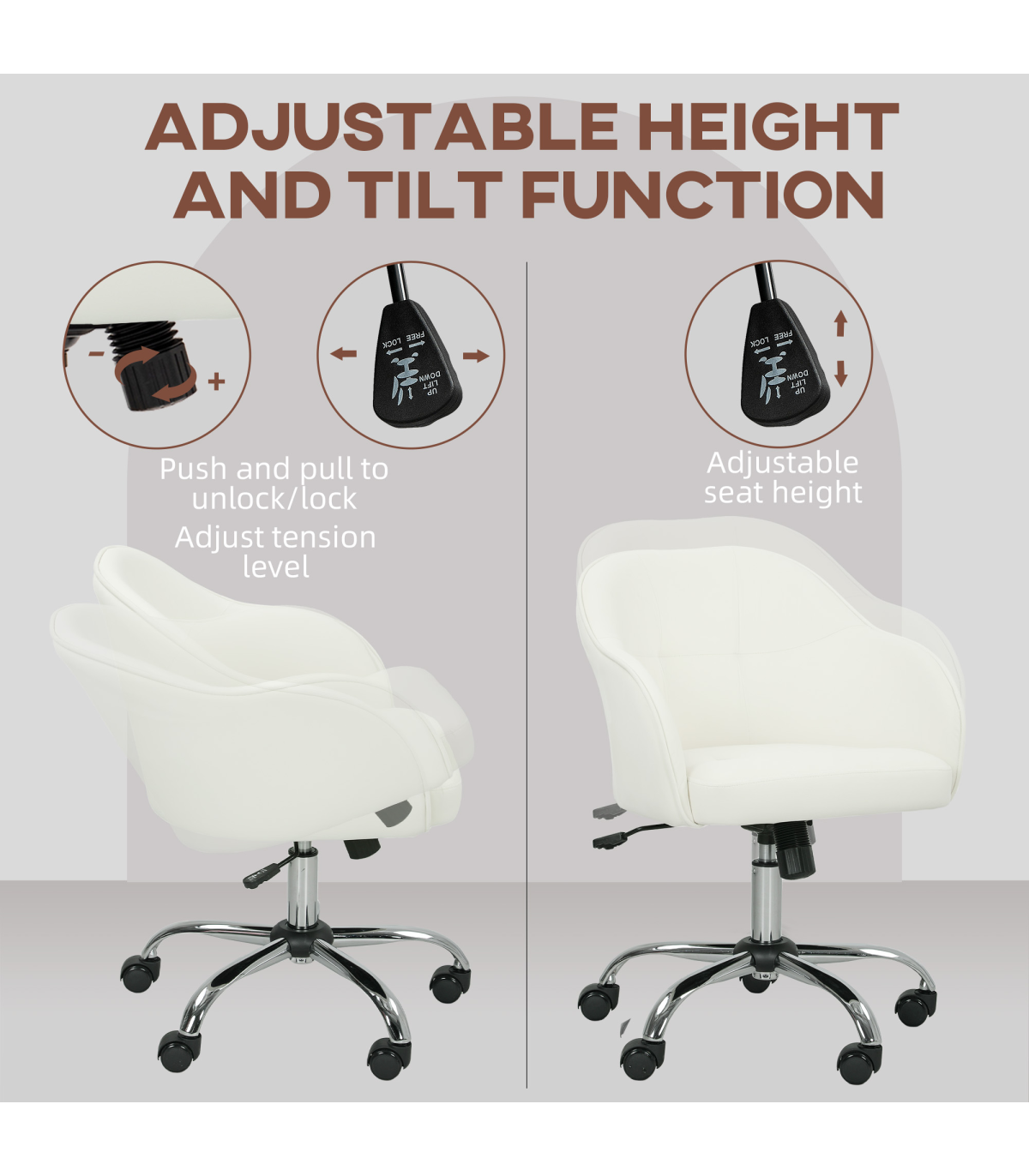 HOMCOM Vanity Chair for Desk, with Height Adjustable, Wheels, Cream
