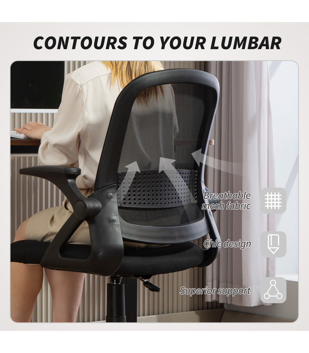 ? Flip-up armrests provide flexibility, allowing them to tuck under the desk when not in use