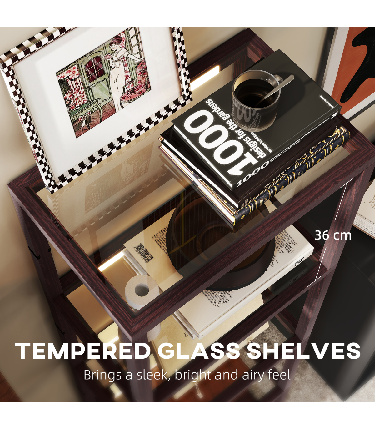 ? Glass Shelf Dimension: 41.5L x 25W x 36H cm