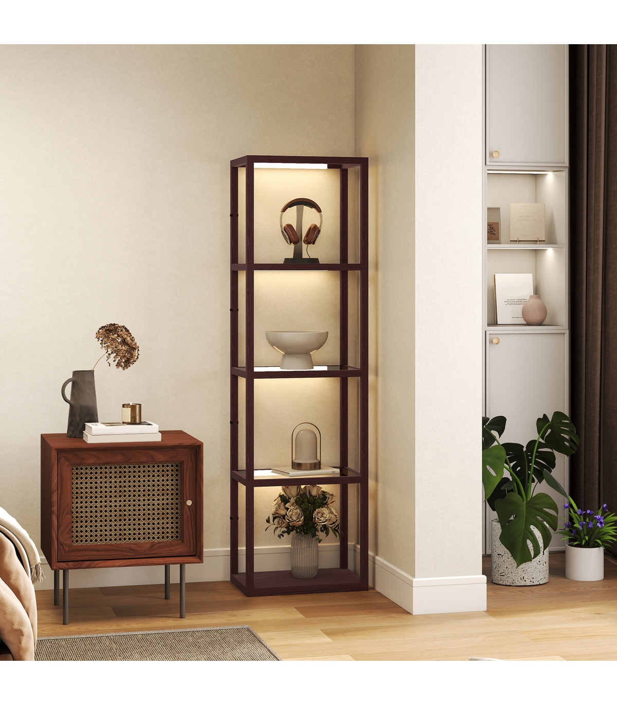 ? Sleek tempered glass shelves enhance light transmission