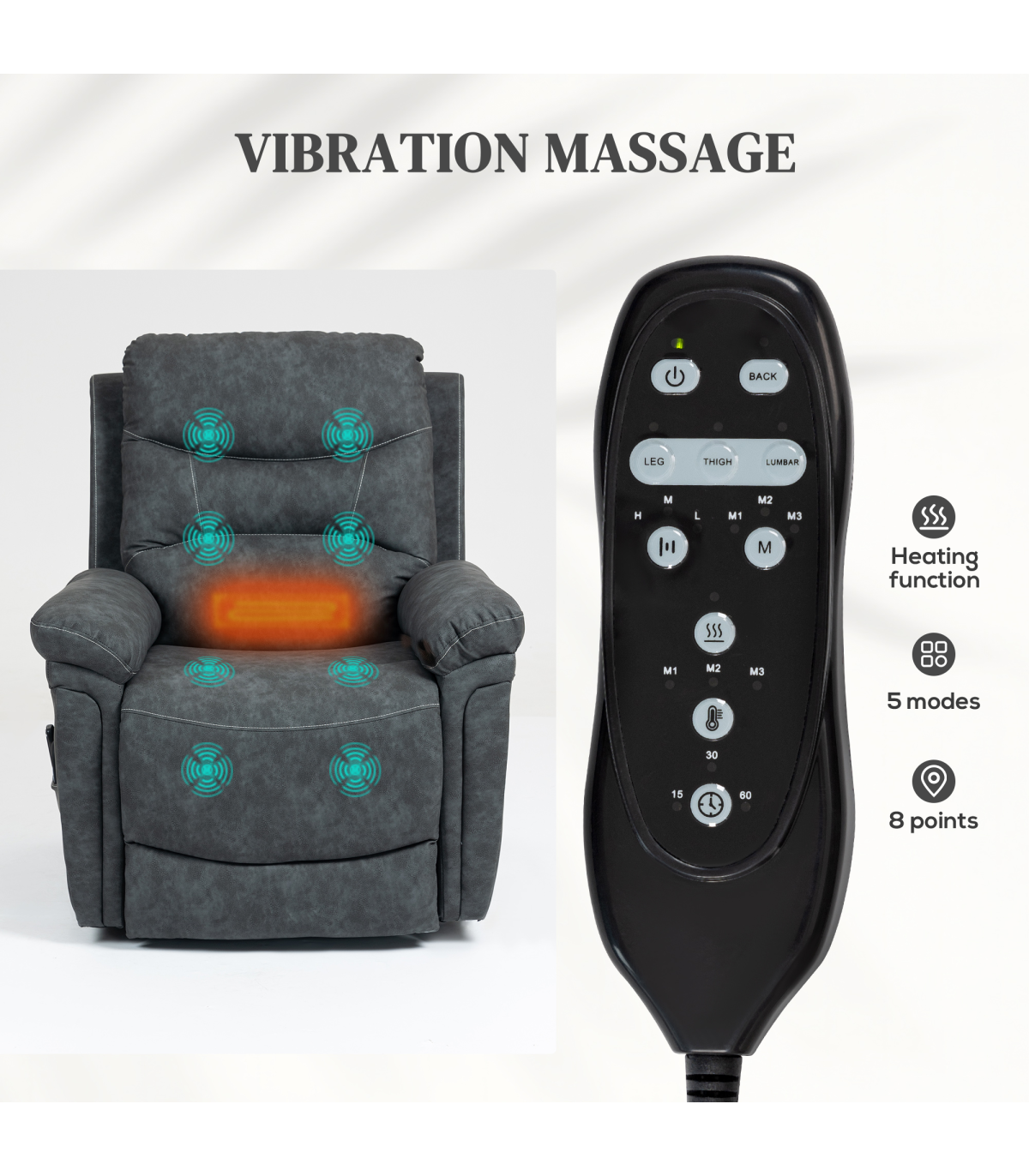 ● Enjoy 8-point vibration massage and lumbar heat for body relaxation