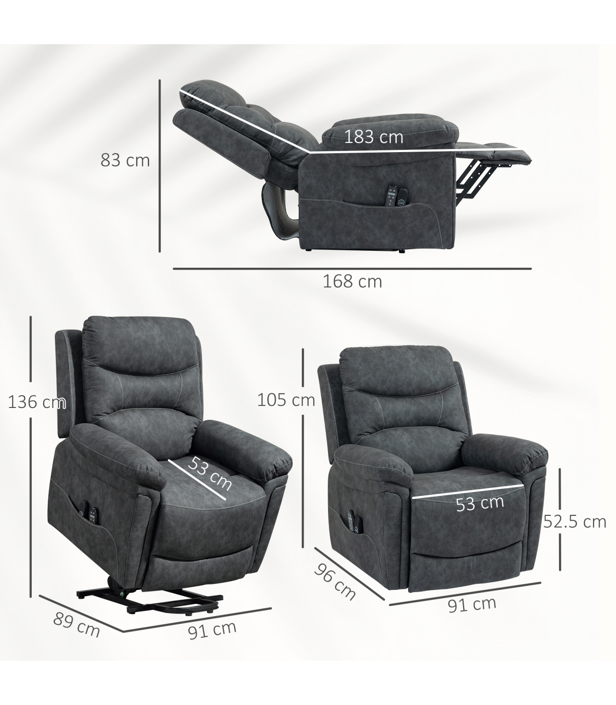● Overall Dimension (Reclining): 91W x 168D x 83H cm