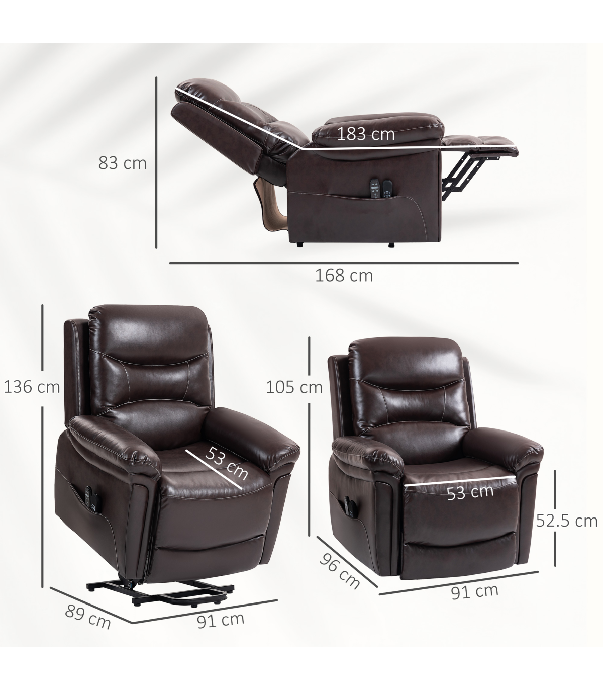● Overall Dimension (Reclining): 91W x 168D x 83H cm