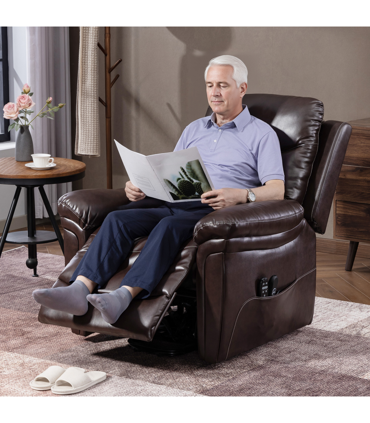 ● Store essentials like remotes and books in the large side pockets