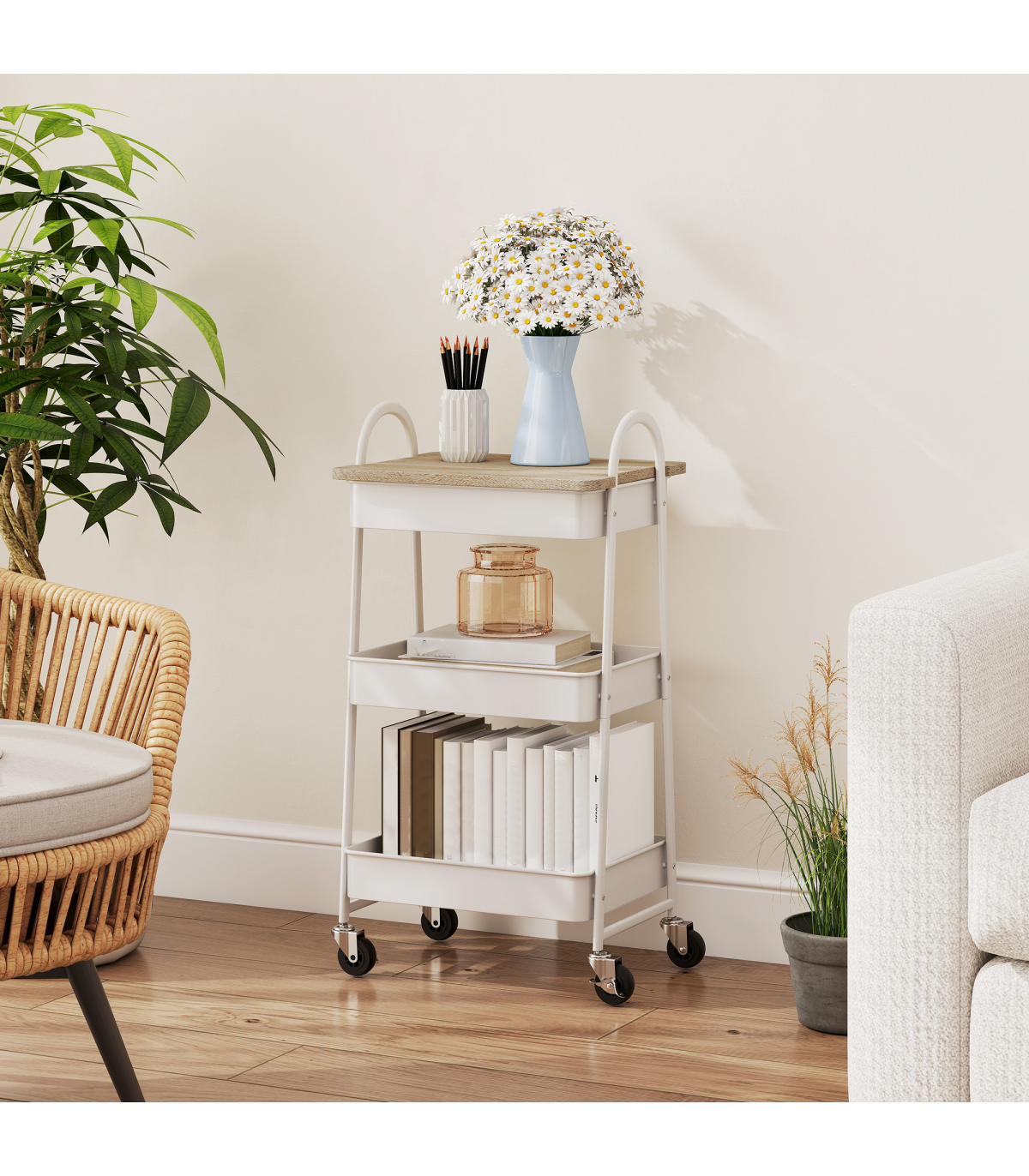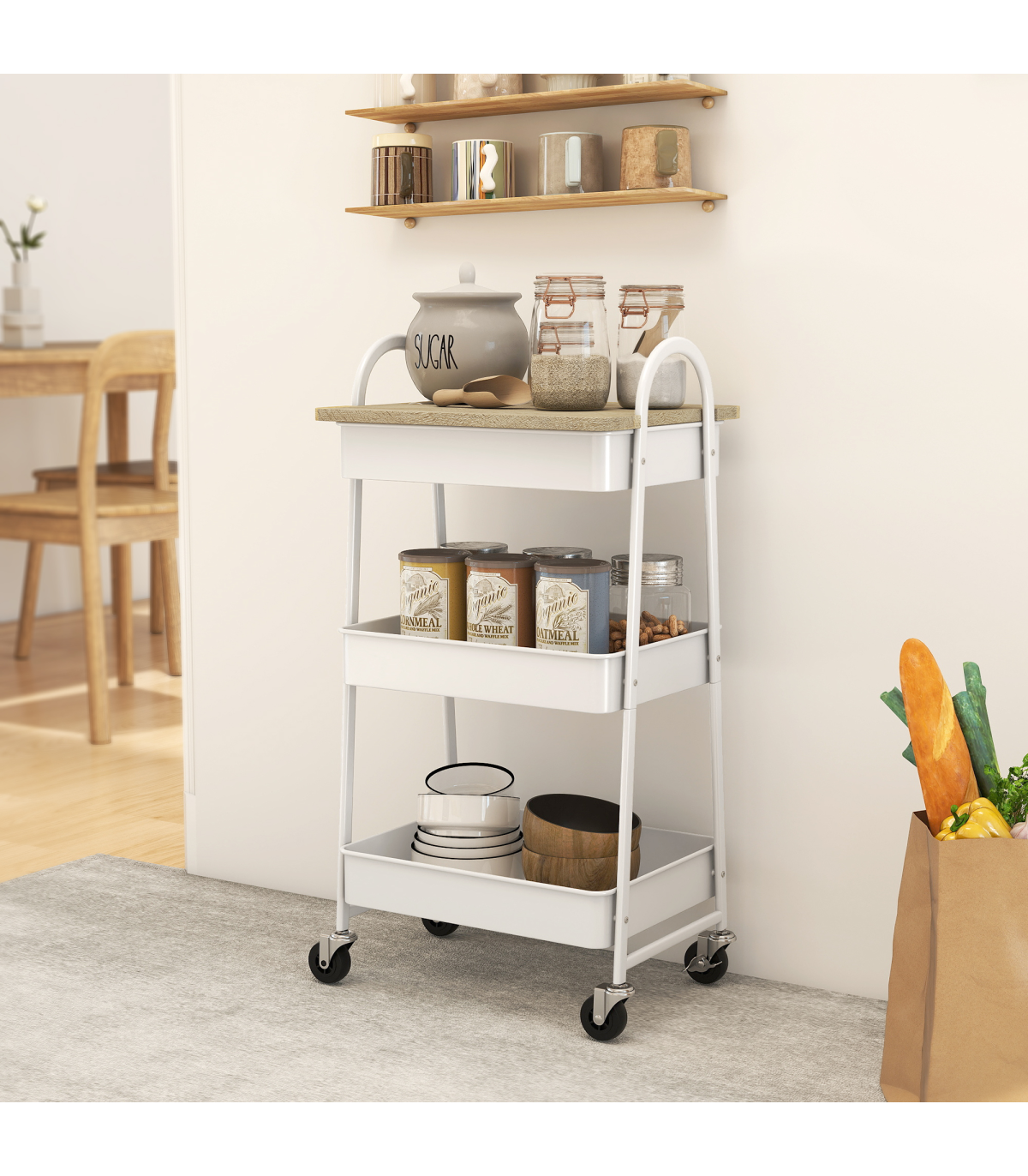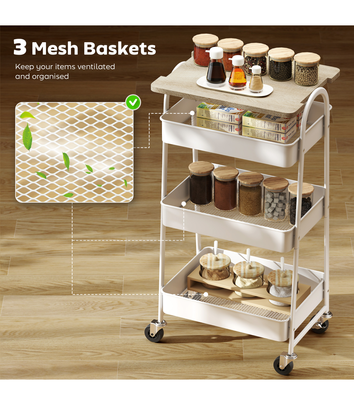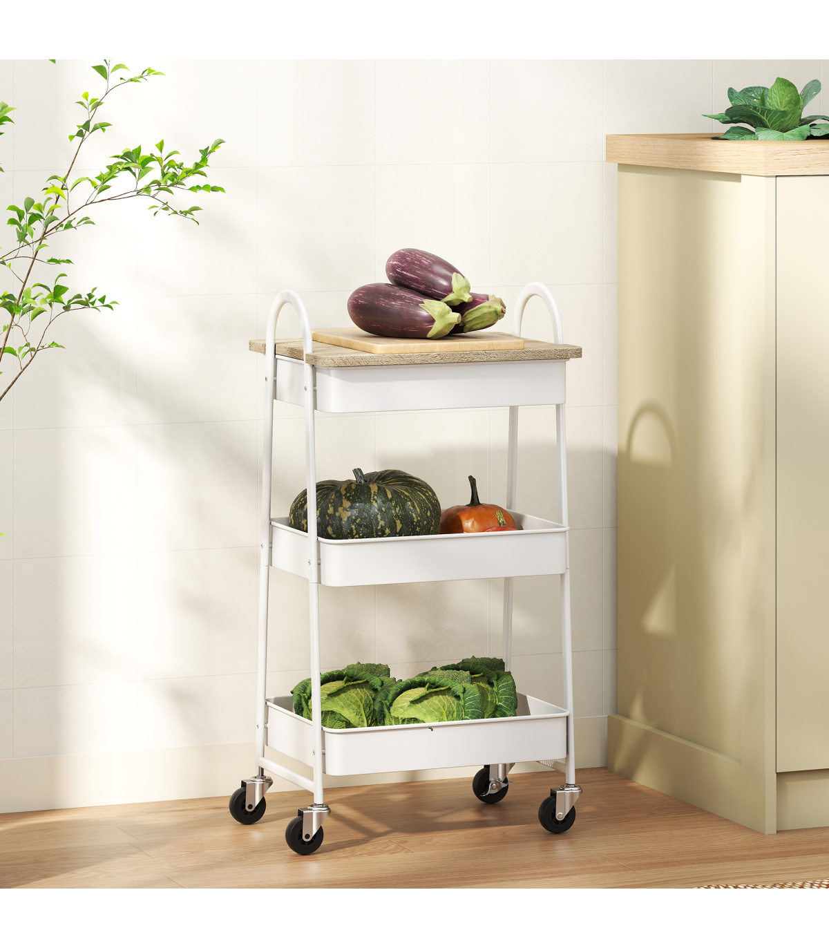 HOMCOM Rolling Utility Cart with Mesh Baskets for Kitchen White Oak