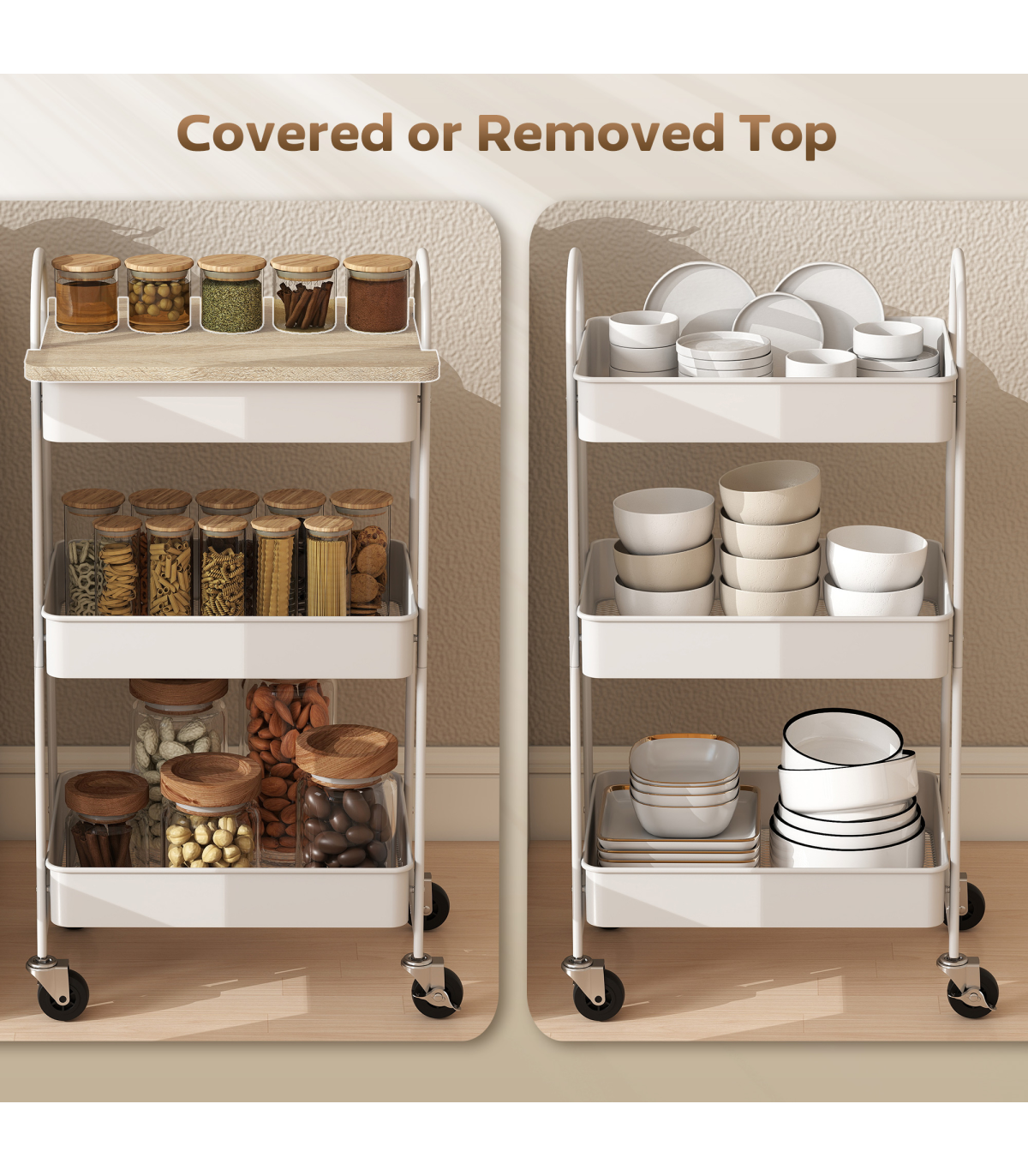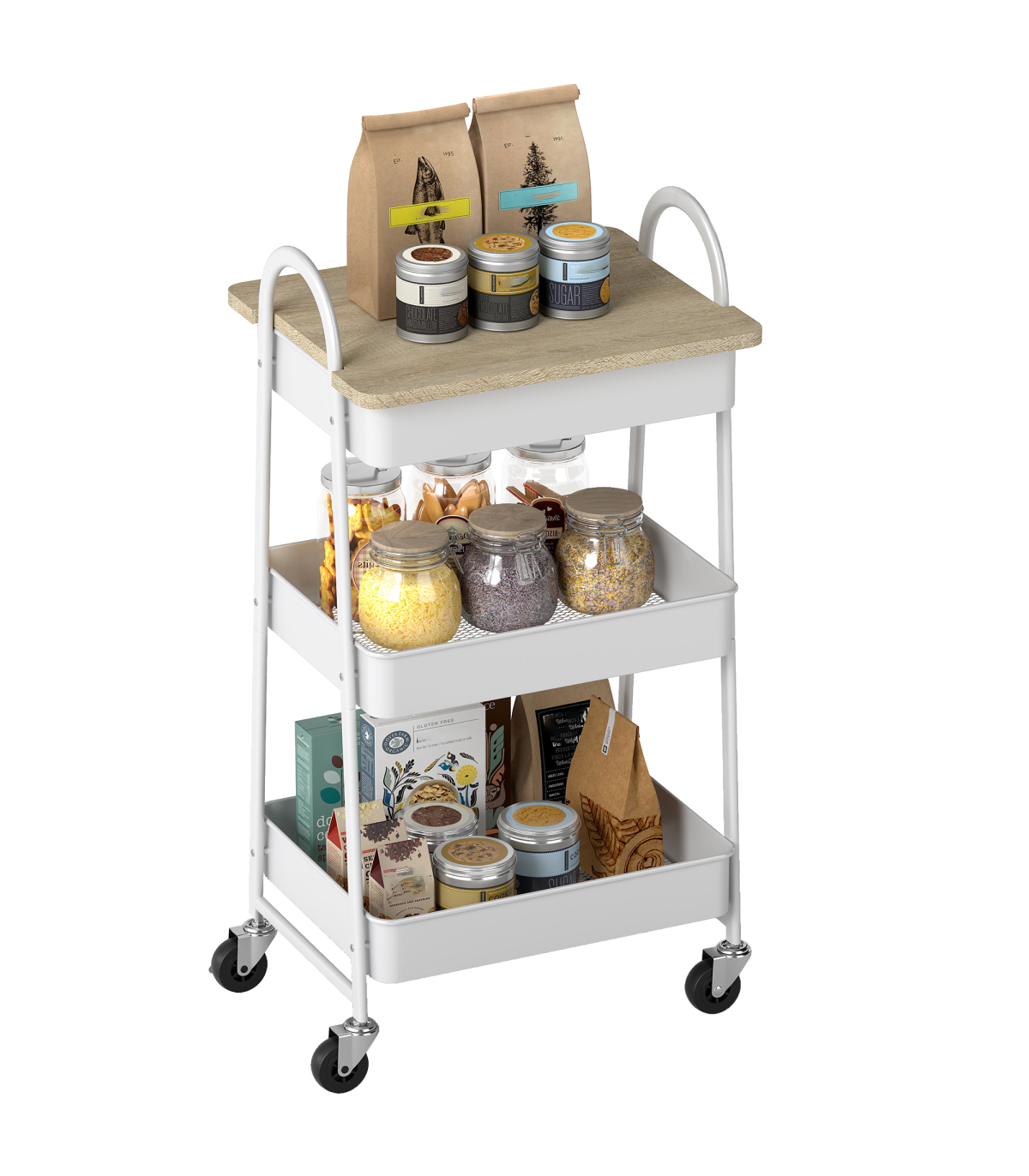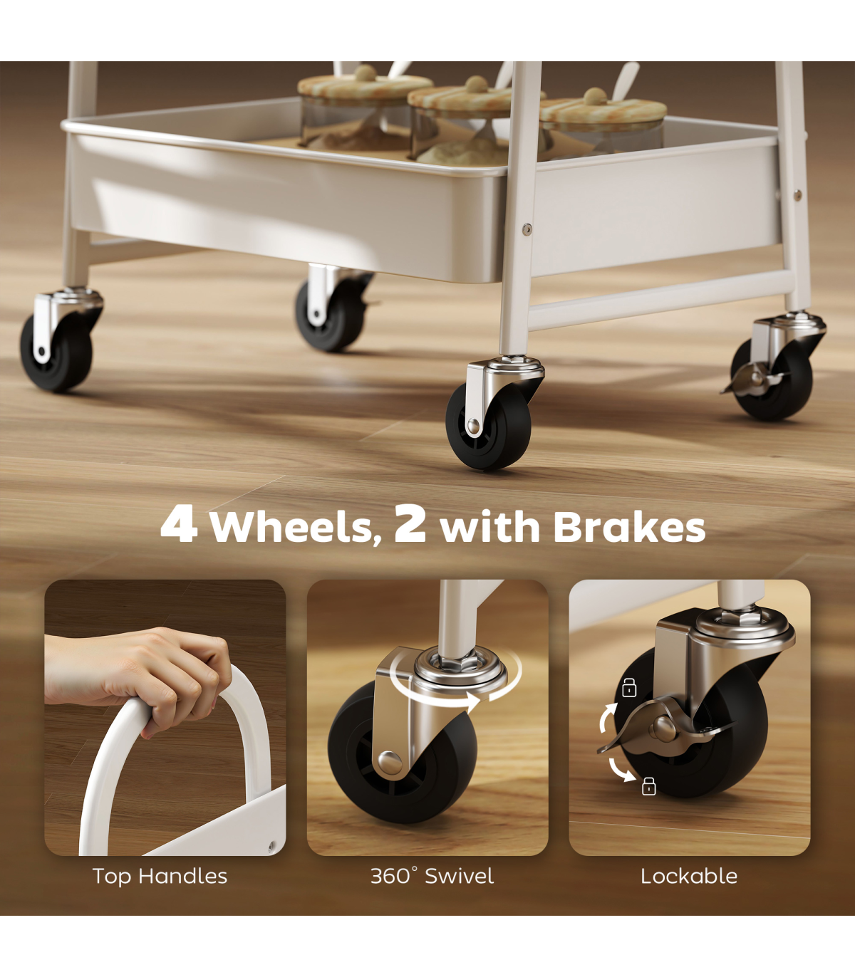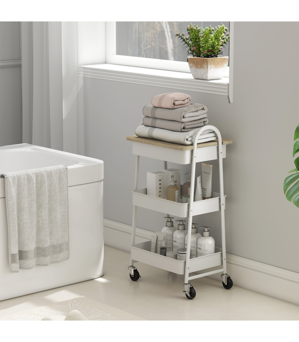 HOMCOM Rolling Utility Cart with Mesh Baskets for Kitchen White Oak