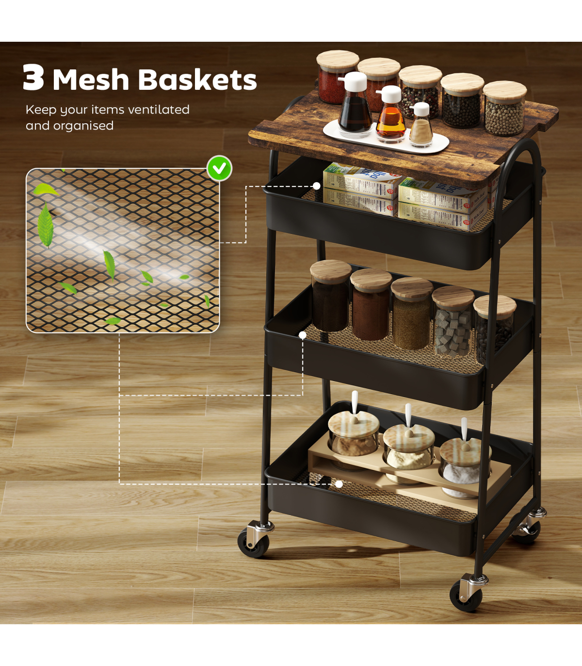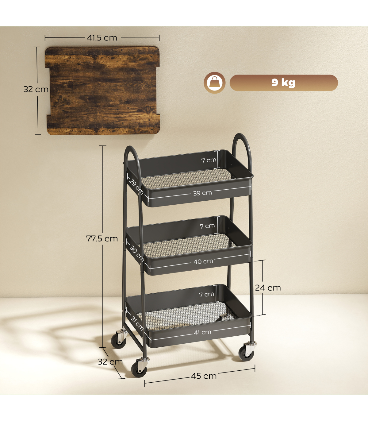 ● Weight Capacity: 9 kg (Overall), 3 kg (Each Tier)
