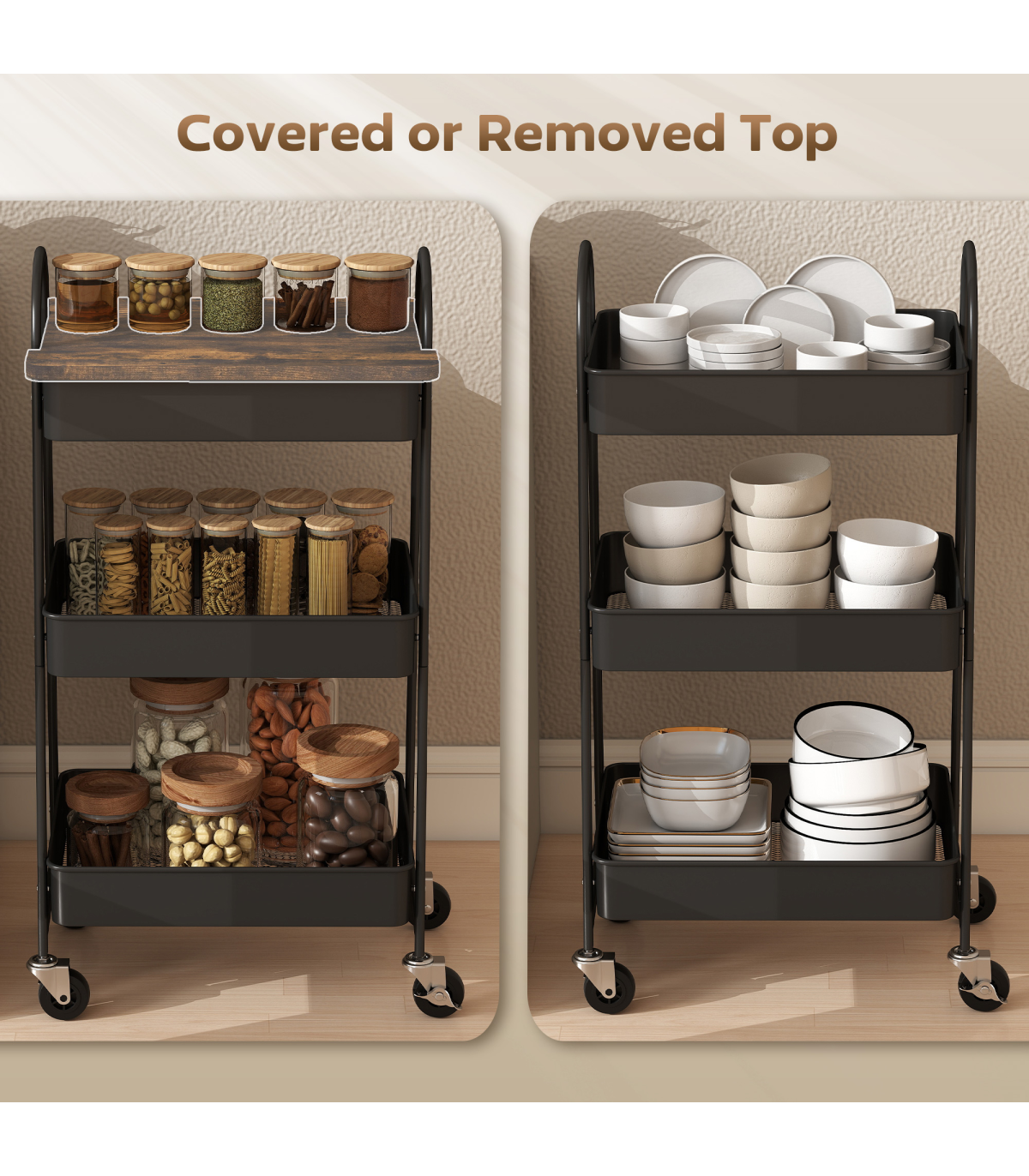 ● Features a covered top board that can be removed, creating an extra surface for daily use