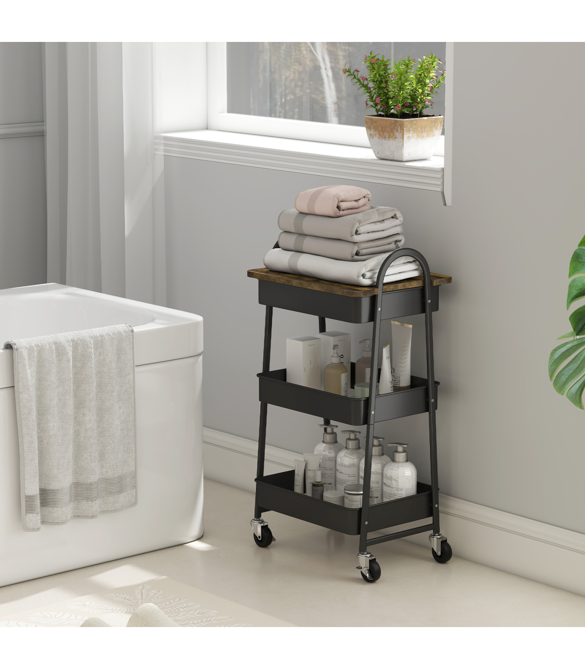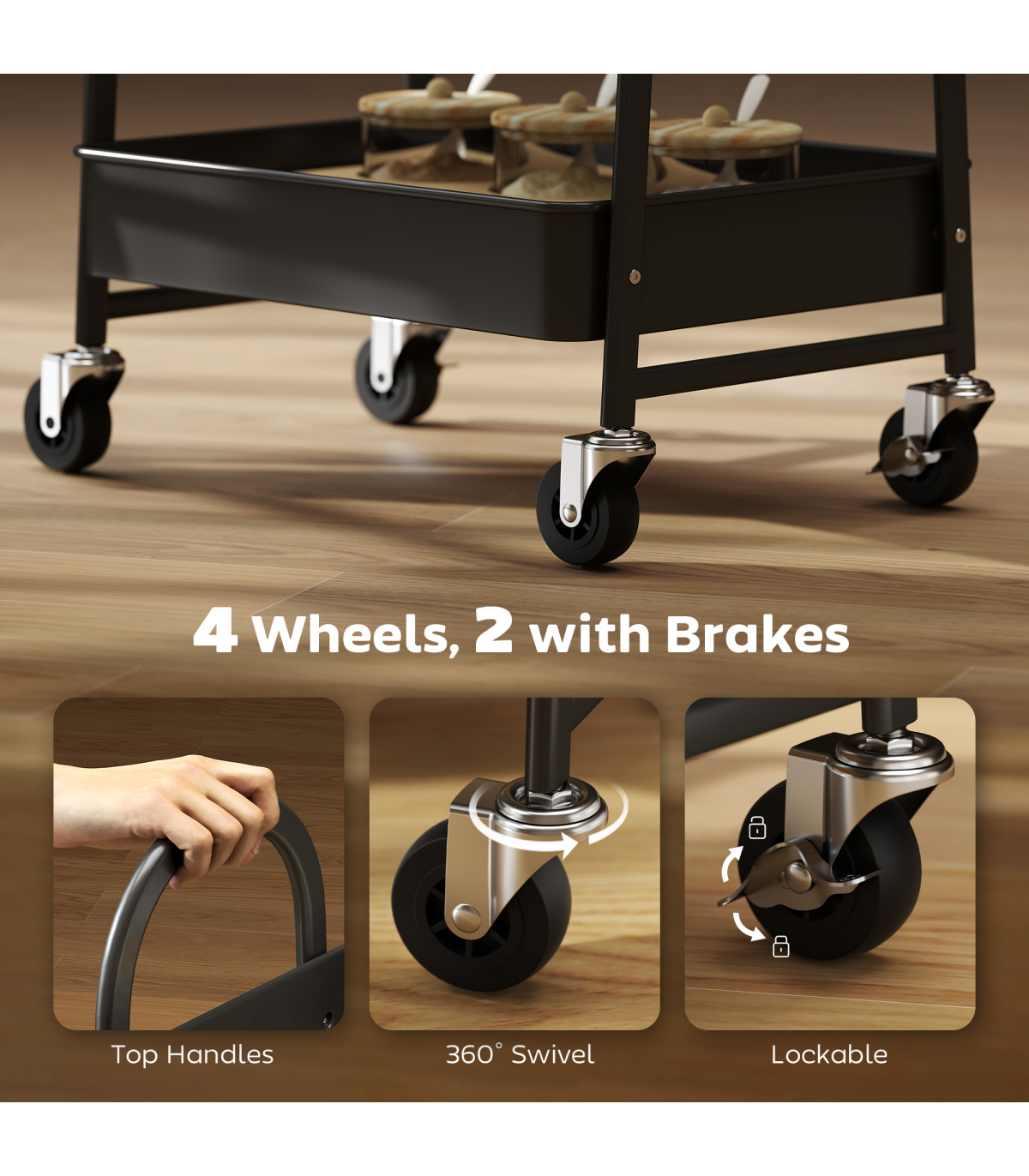 ● Four smooth-rolling casters with handles allow for effortless movement