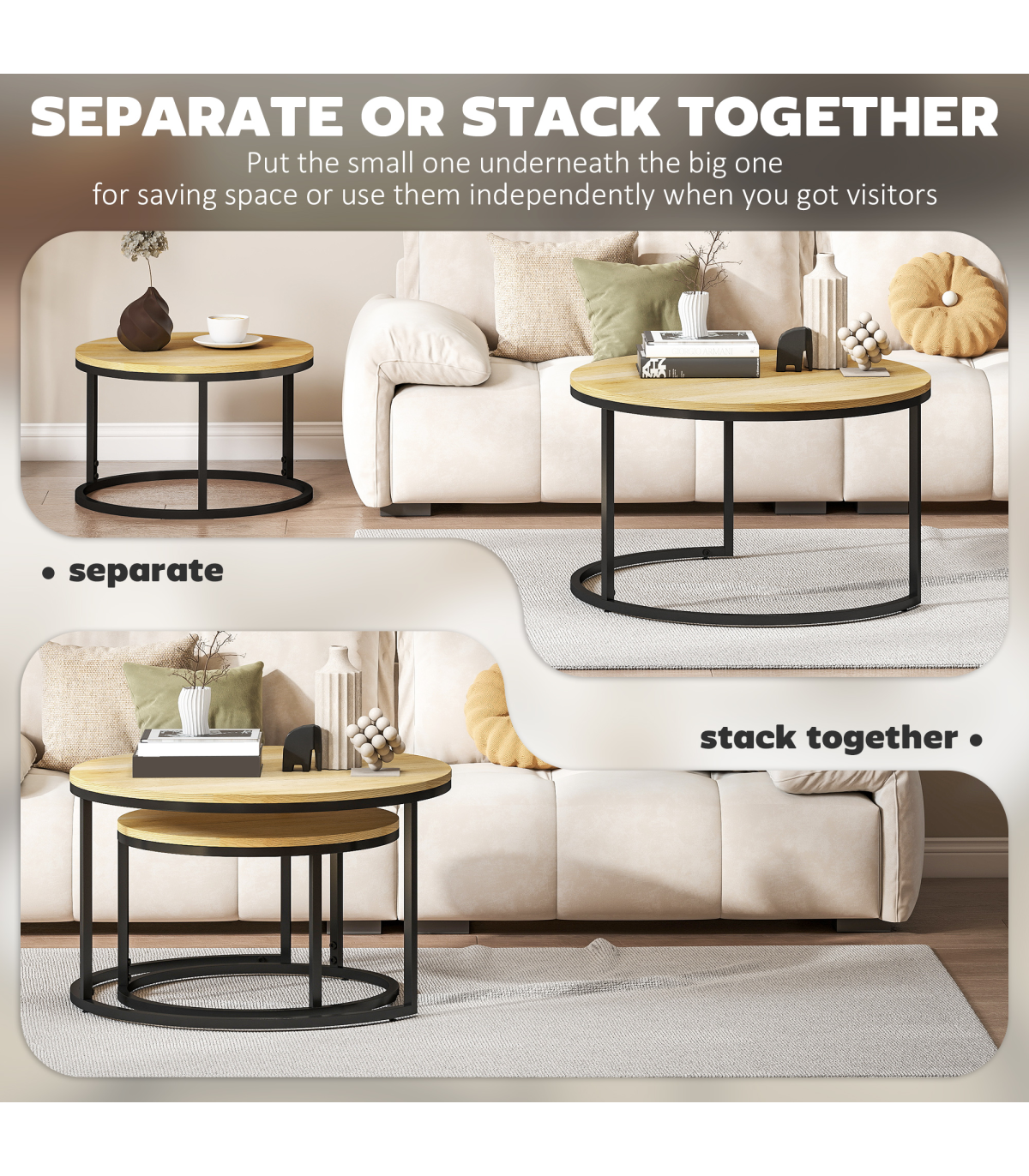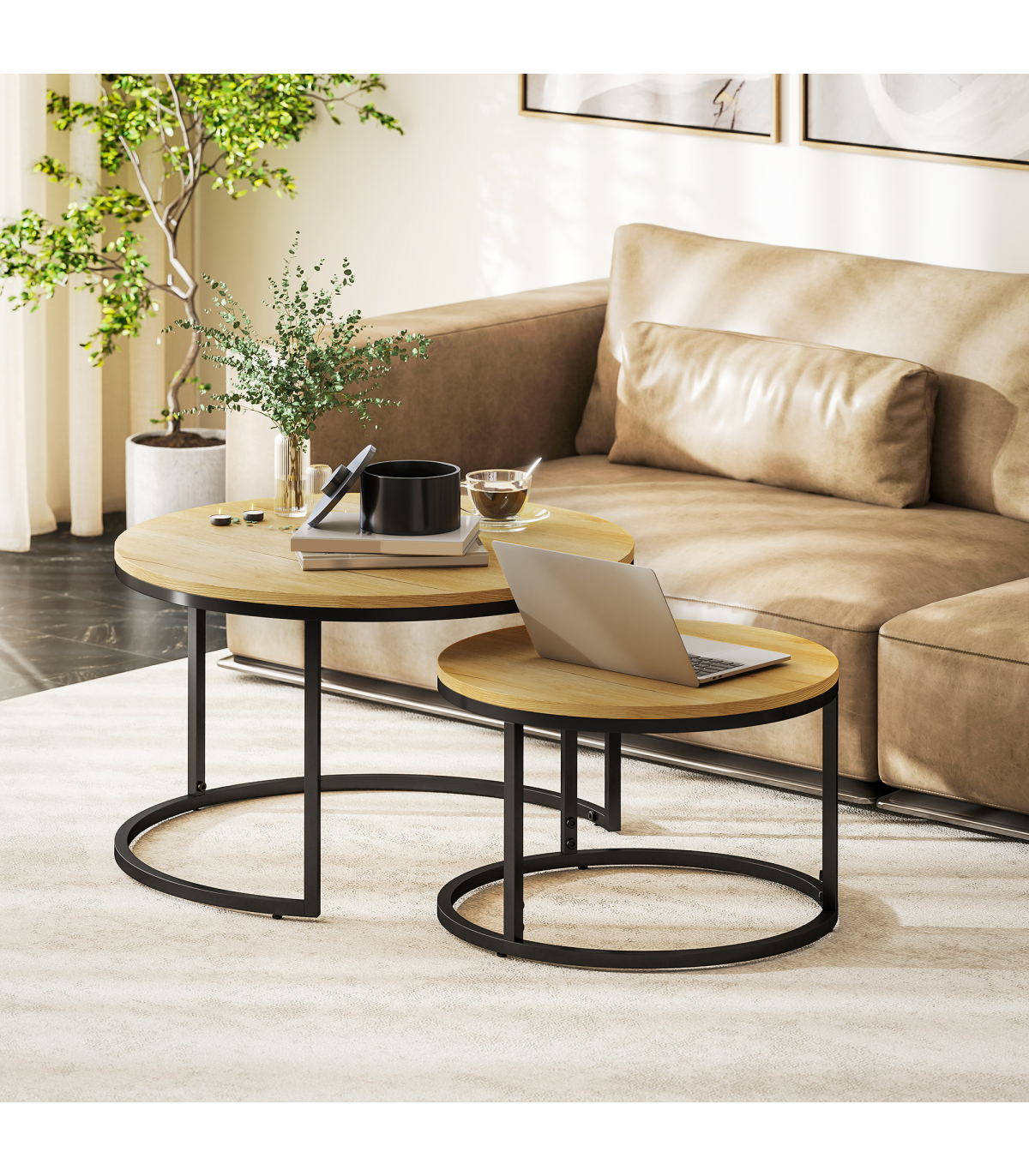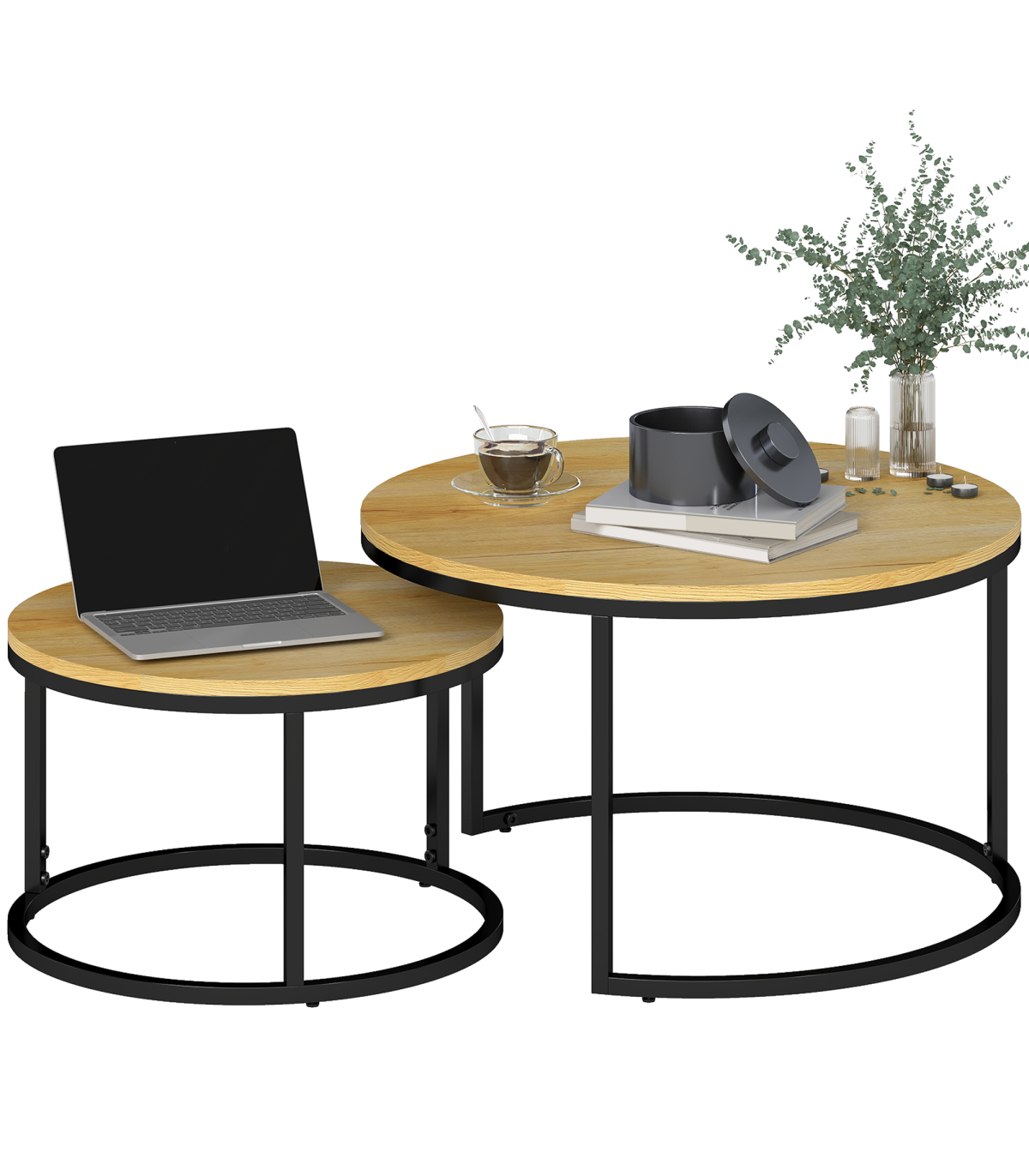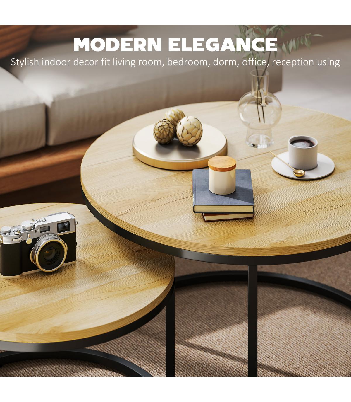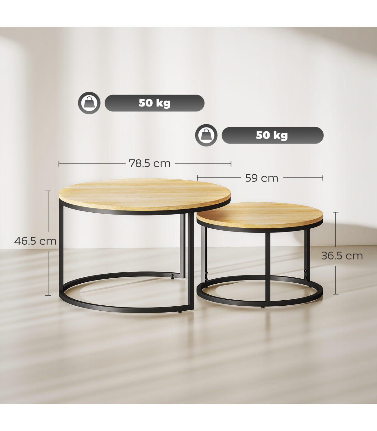 ● Round table tops for lots of holding room, made from MDF in a beautiful wood-effect