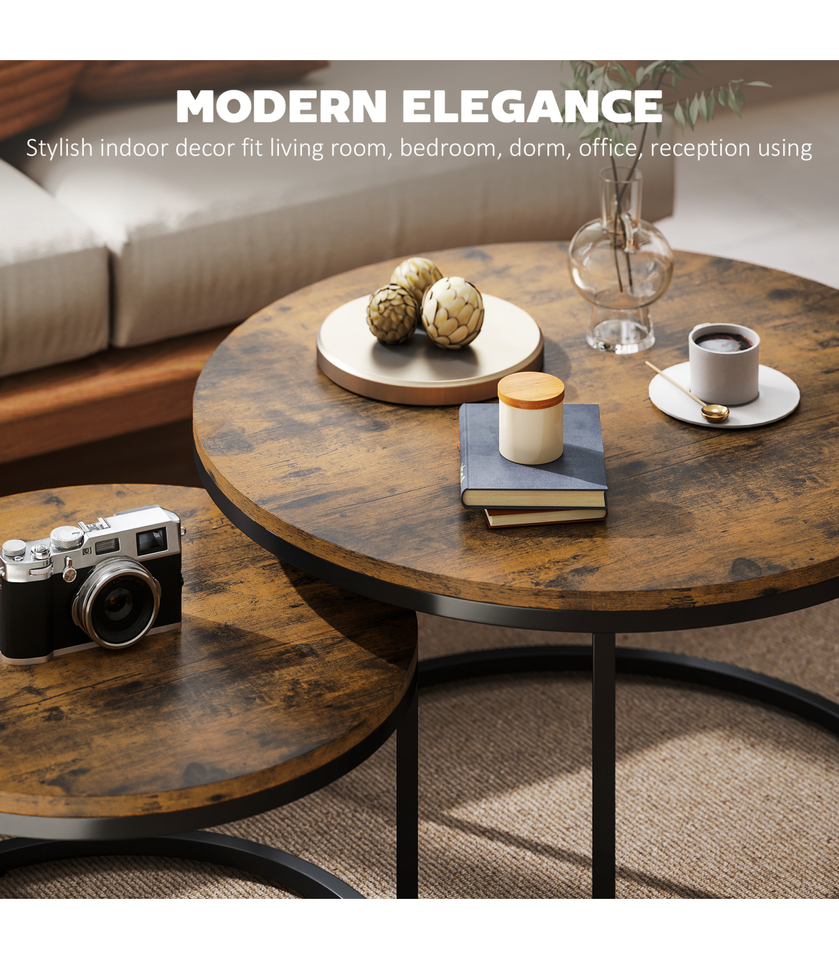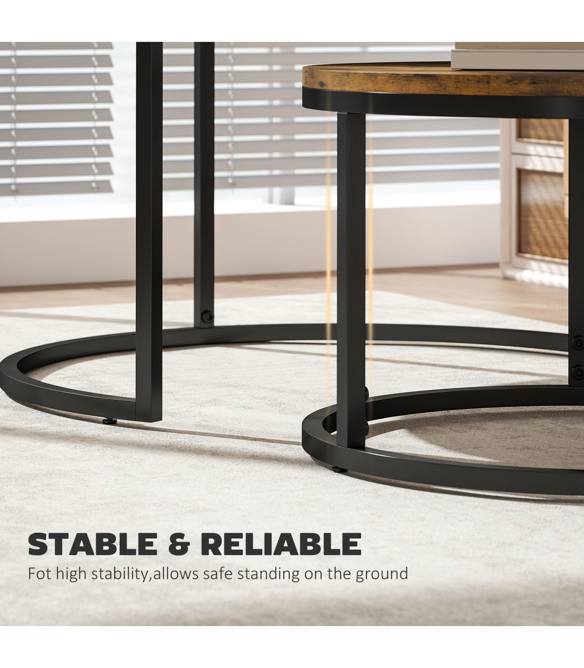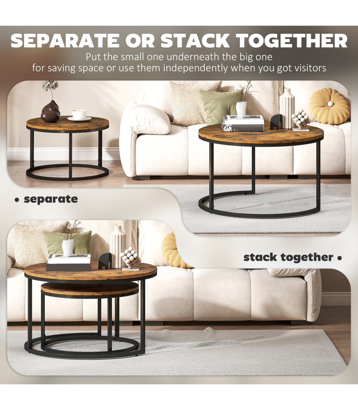 HOMCOM 2 Pcs Stacking Coffee Table Set with Steel Frame, Rustic Brown
