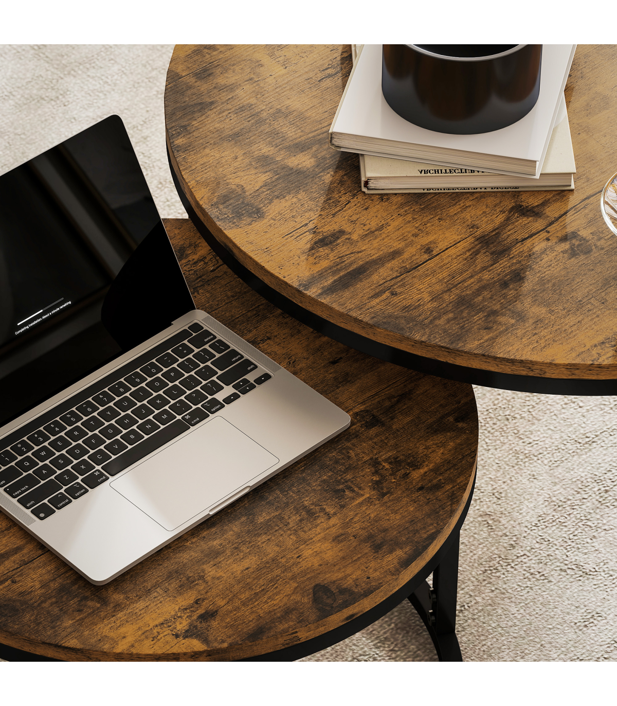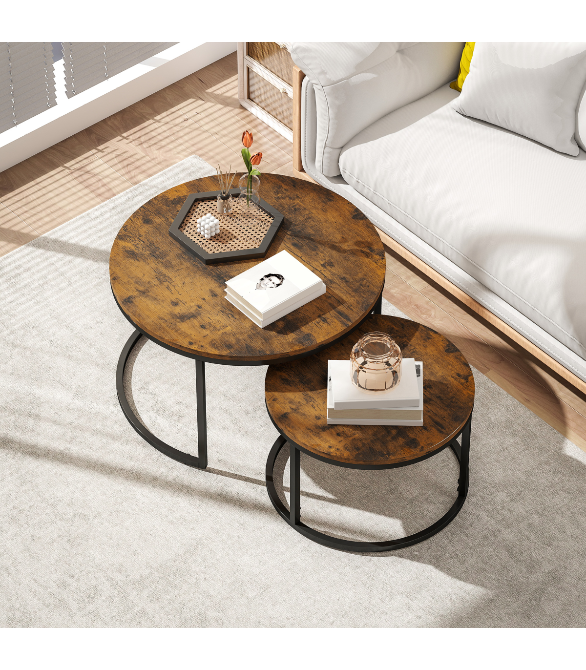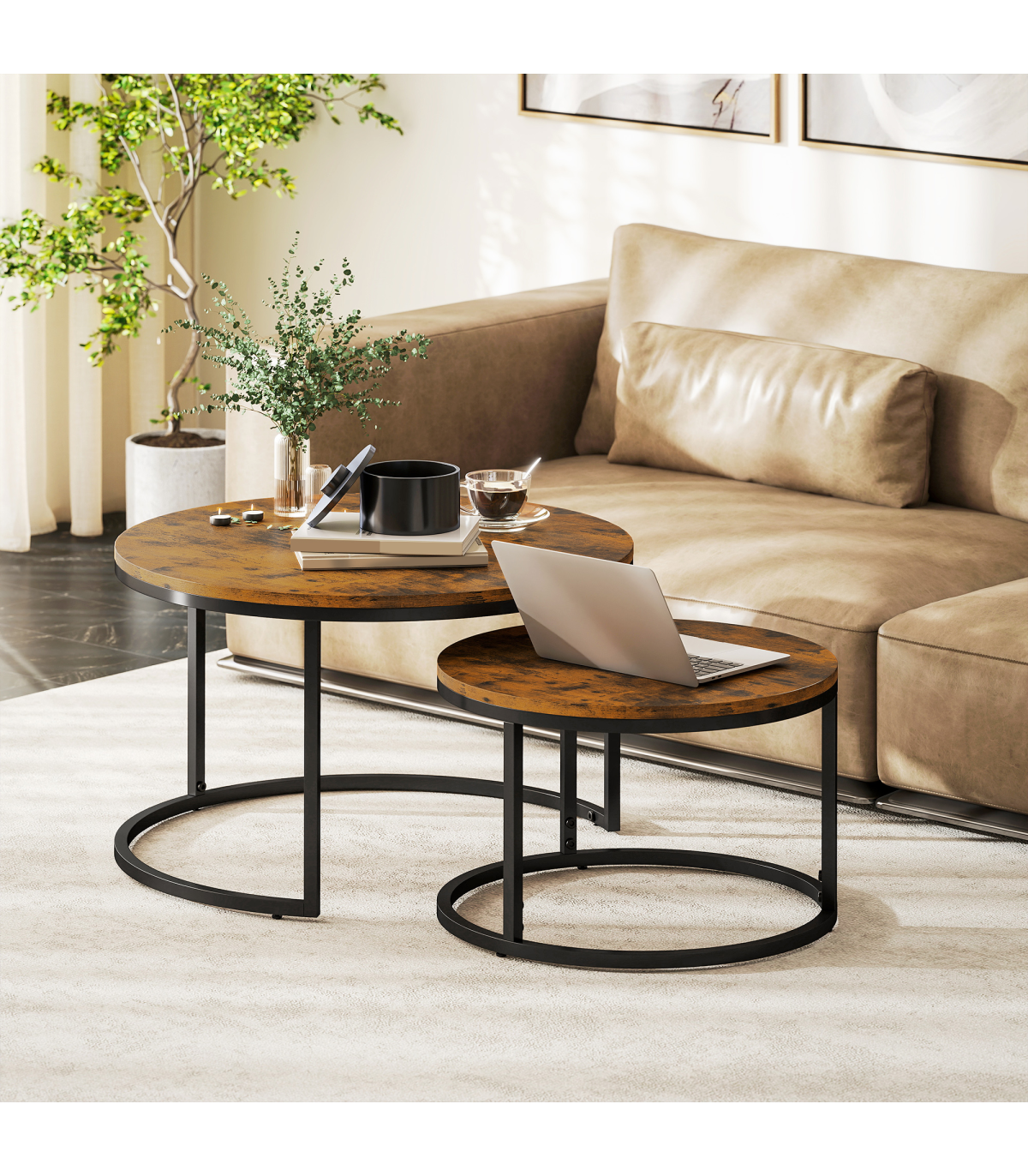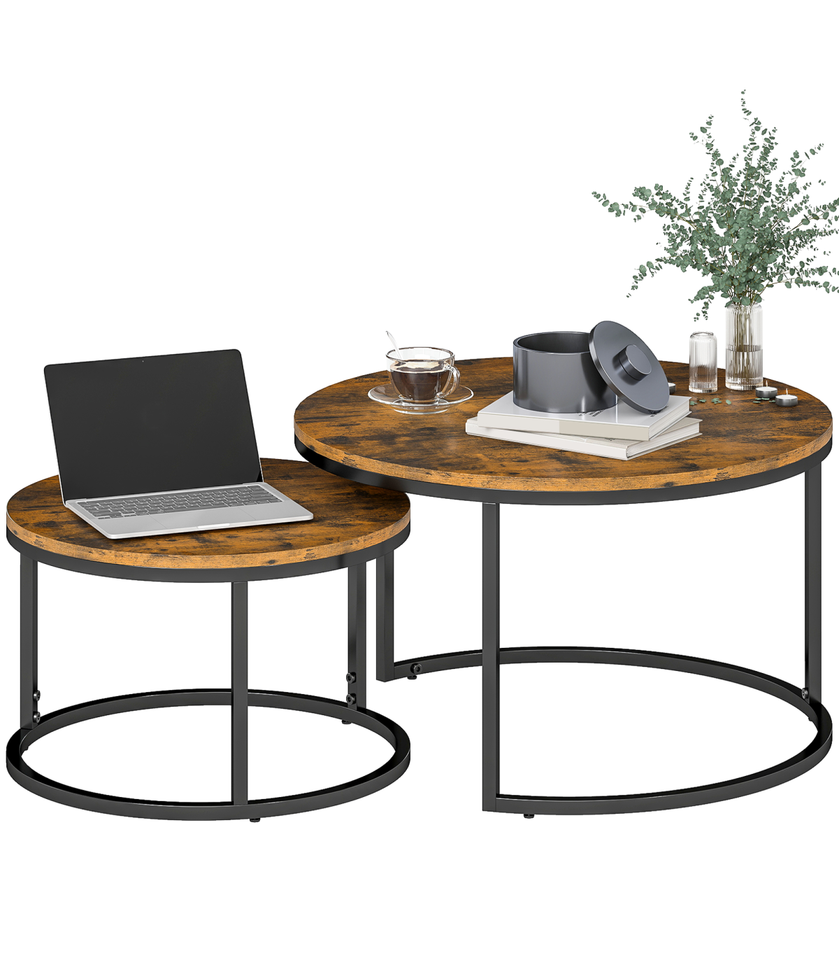 HOMCOM 2 Pcs Stacking Coffee Table Set with Steel Frame, Rustic Brown