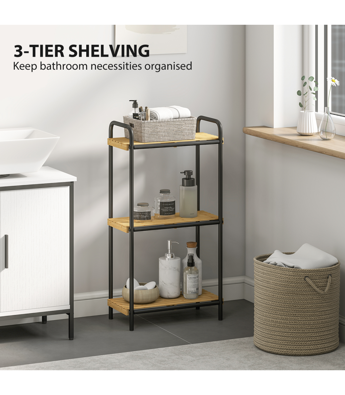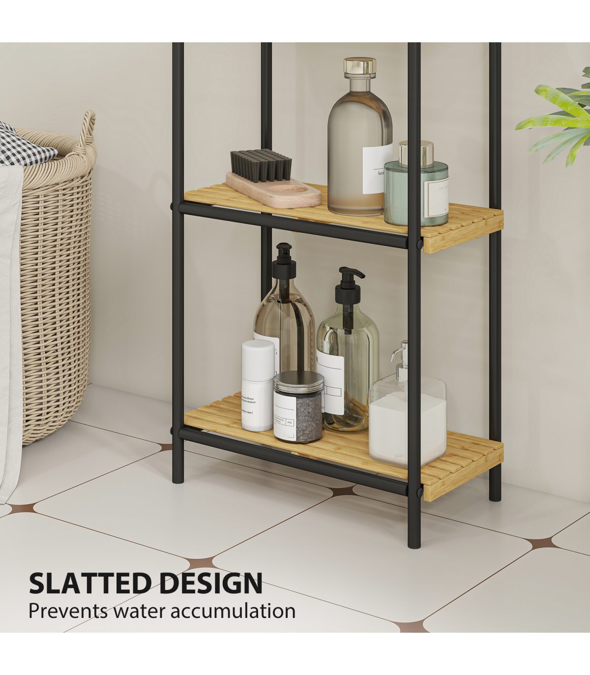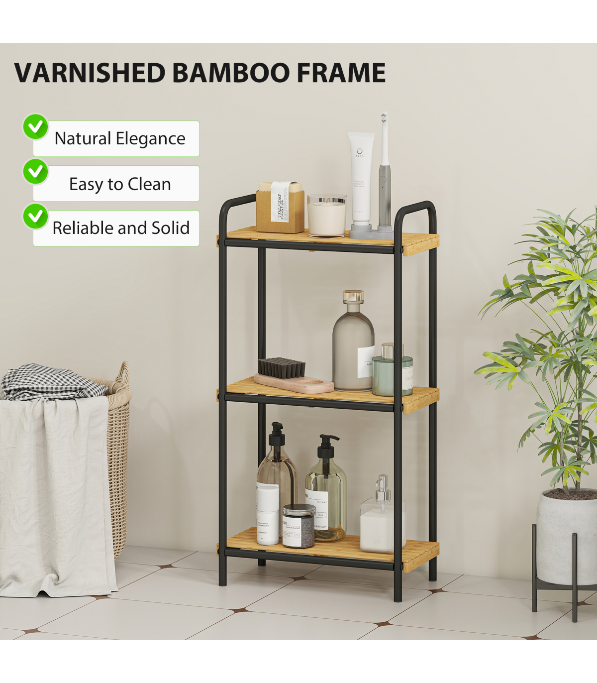 ● Varnished natural bamboo shelves offer moisture and mould resistance