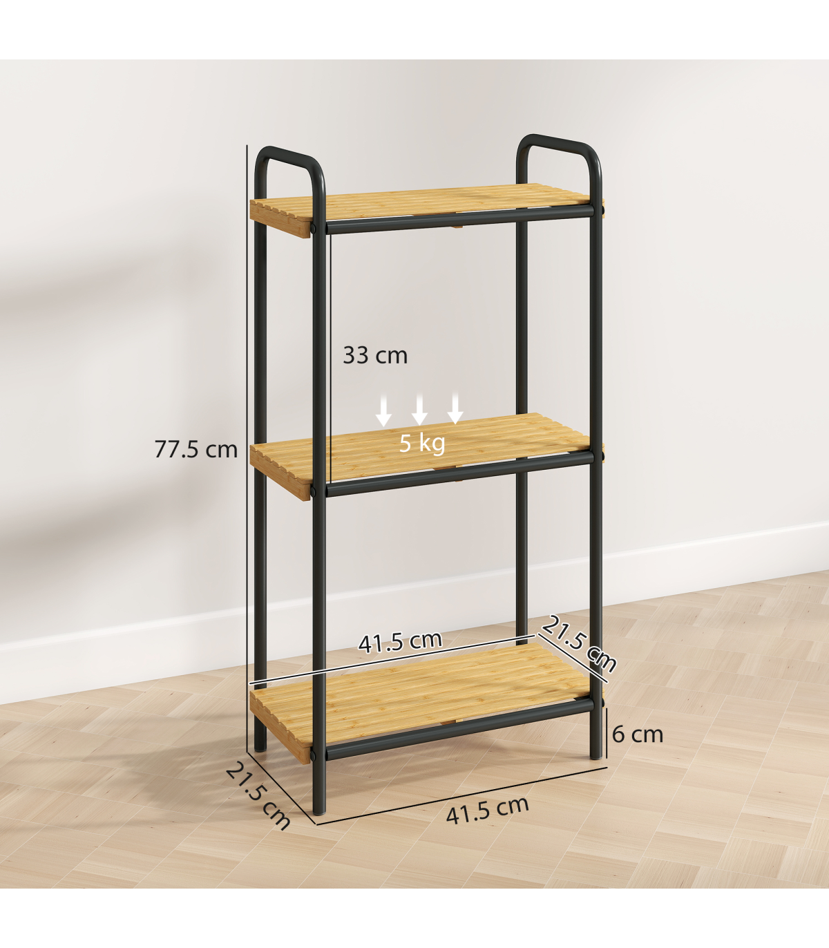● Maximum Load: 5 kg (per shelf), 15 kg (total)