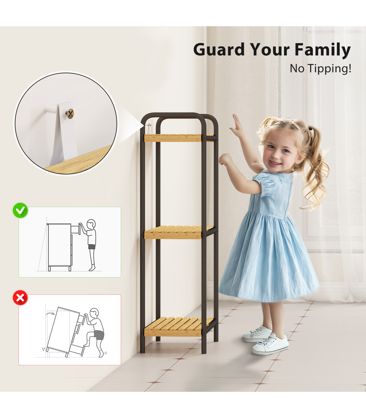 ● Anti-tip kit and powder-coated steel frame keep your family safe
