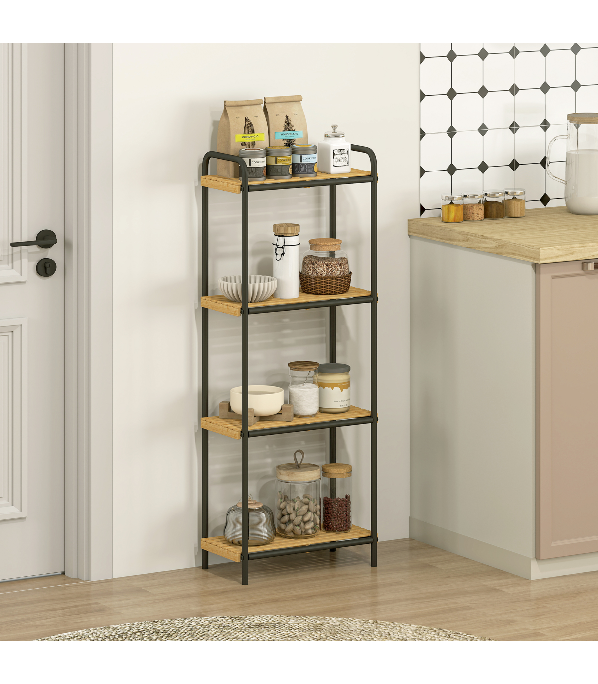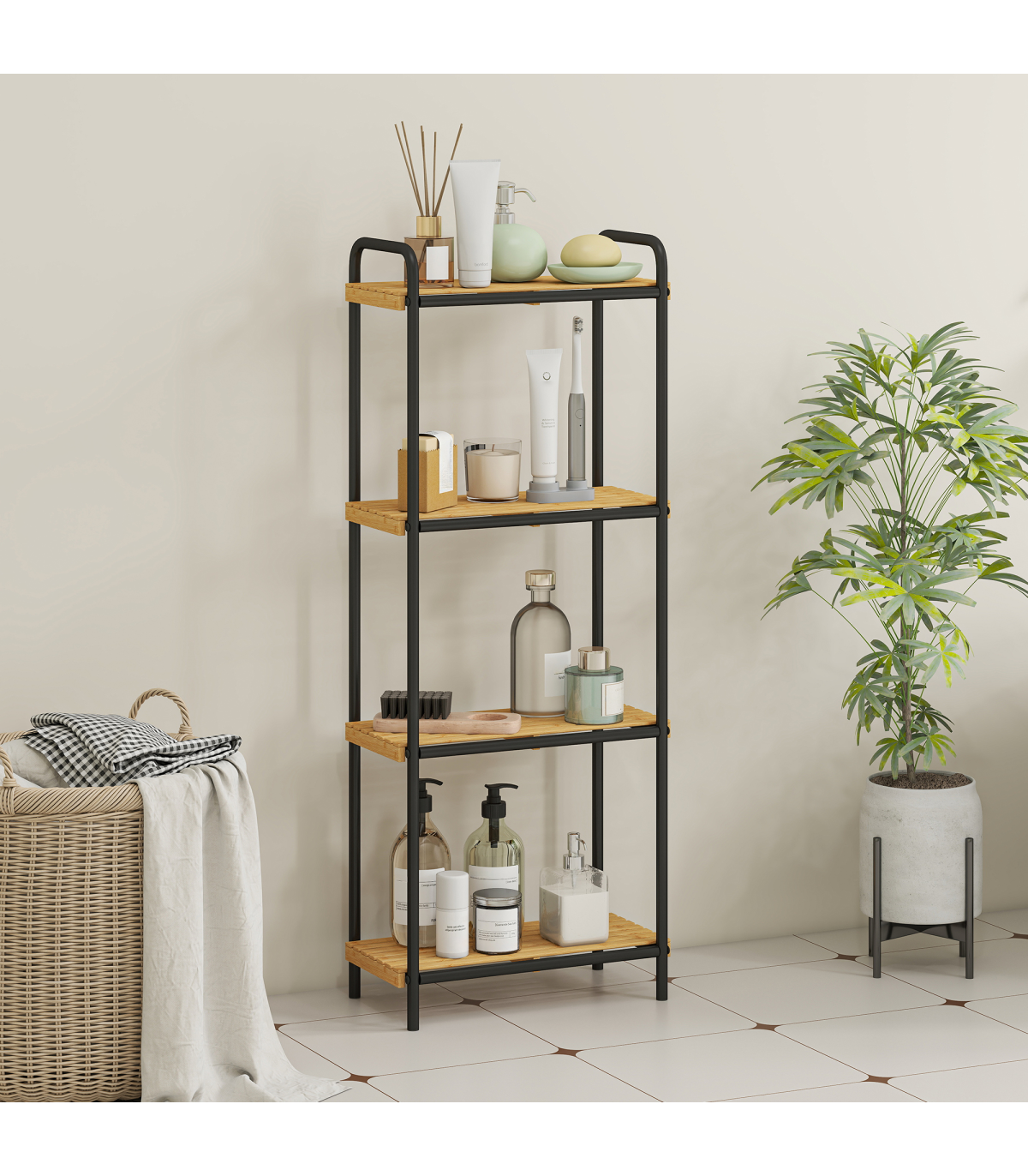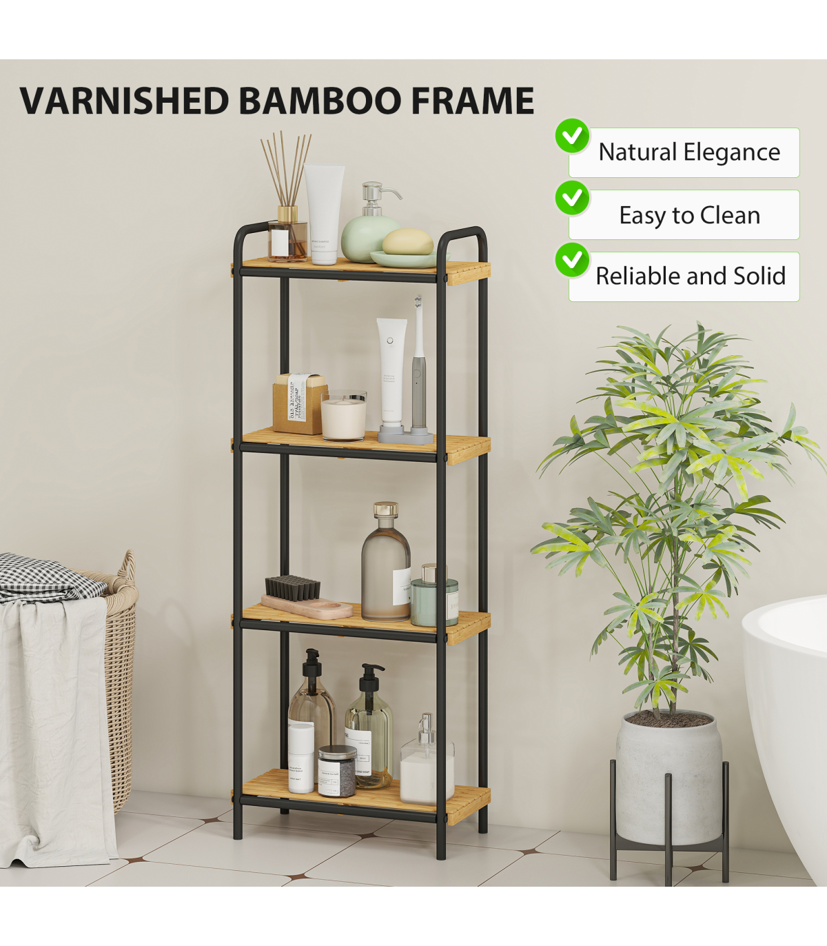 ● Varnished natural bamboo shelves offer moisture and mould resistance
