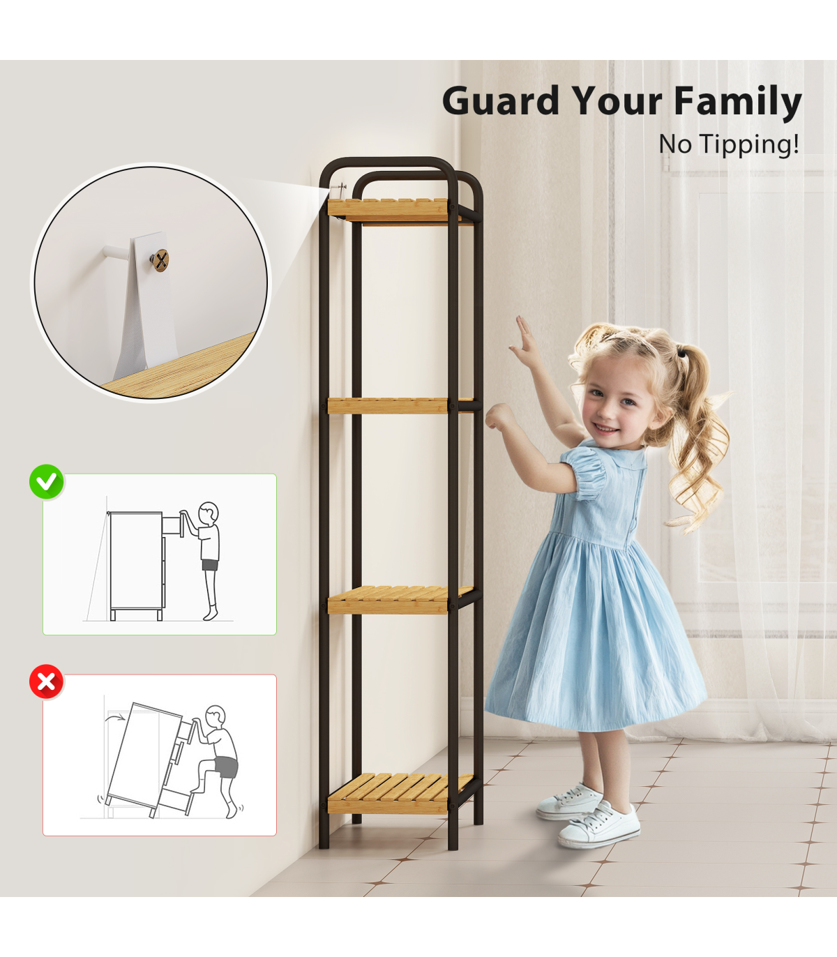 ● Anti-tip kit and powder-coated steel frame keep your family safe