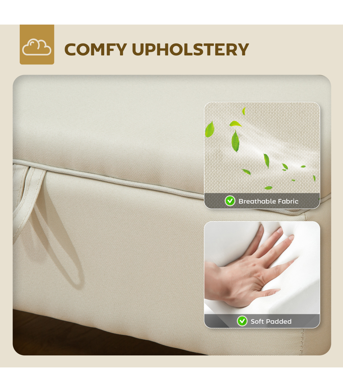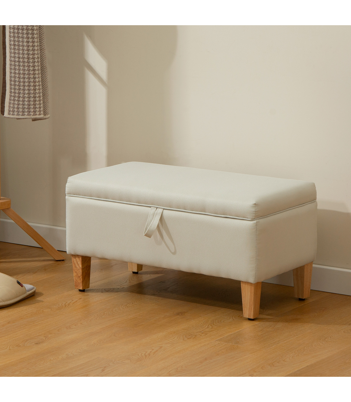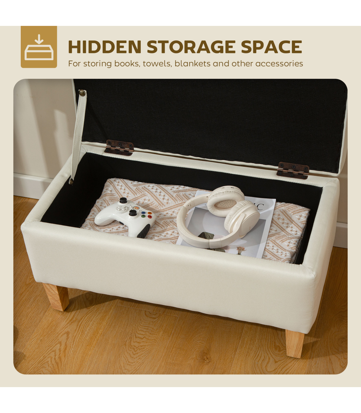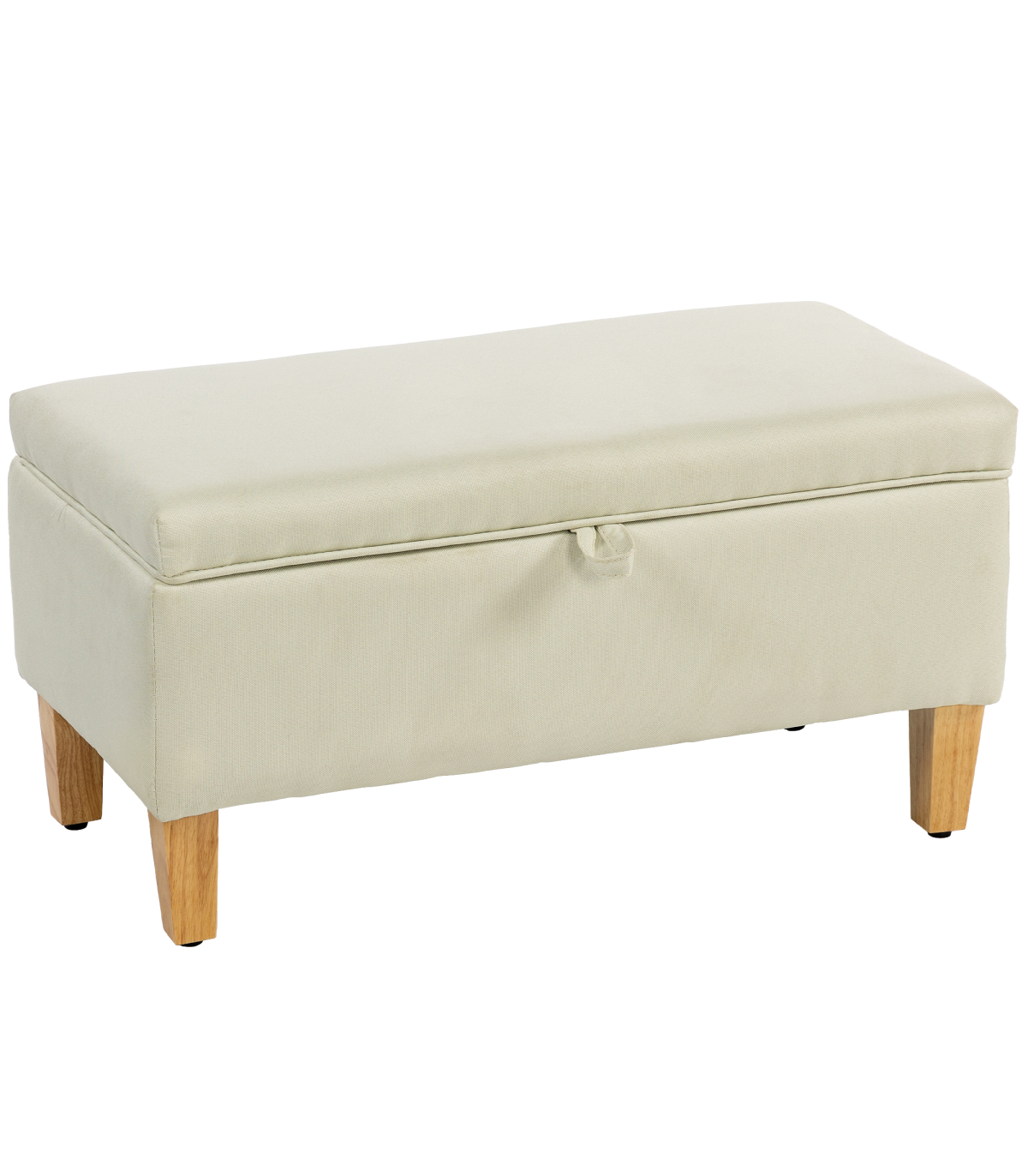 HOMCOM Linen Storage Ottoman Storage Box with Rubberwood Legs, Beige