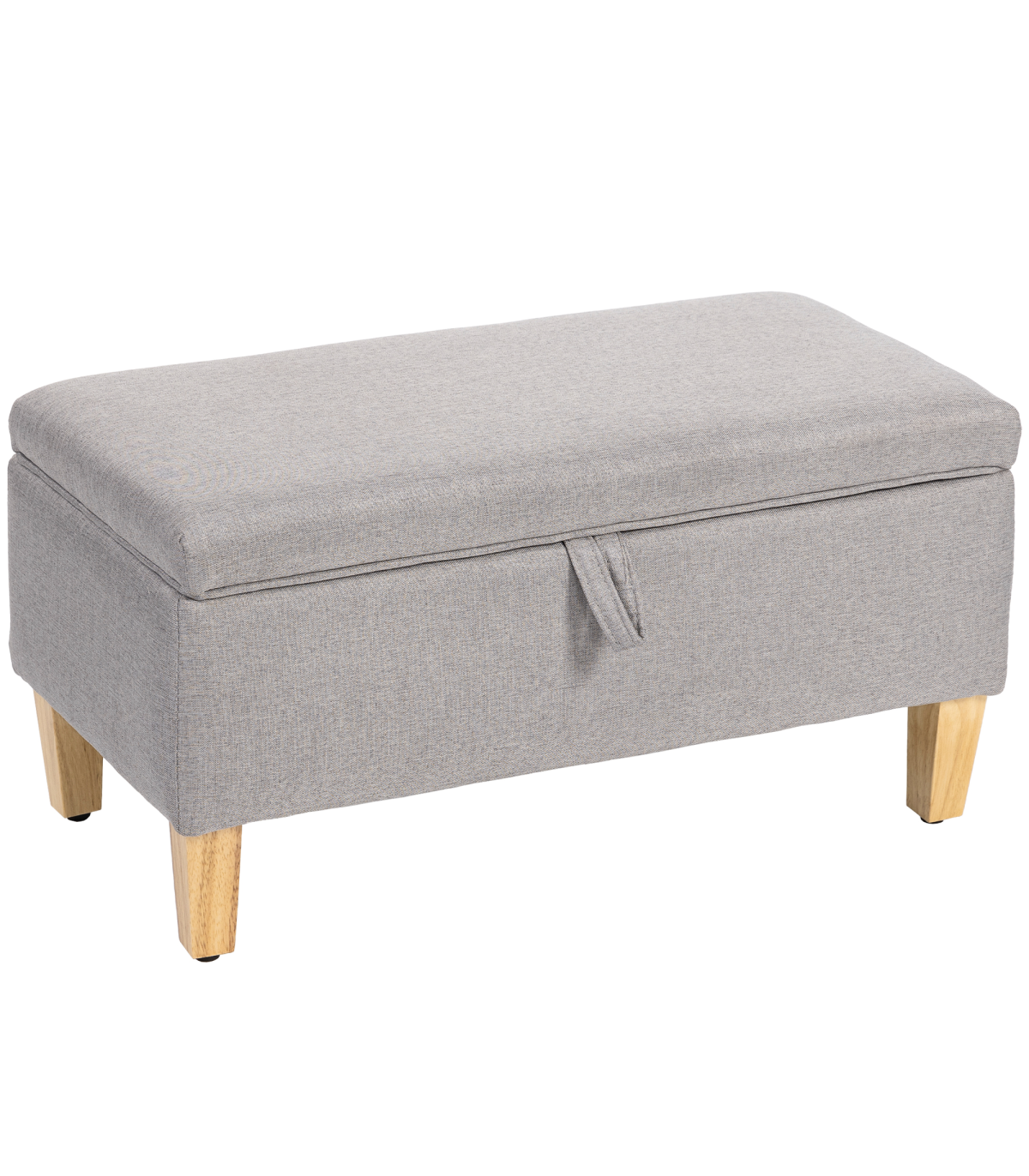 HOMCOM Linen Storage Ottoman Storage Box with Rubberwood Legs, Light Grey