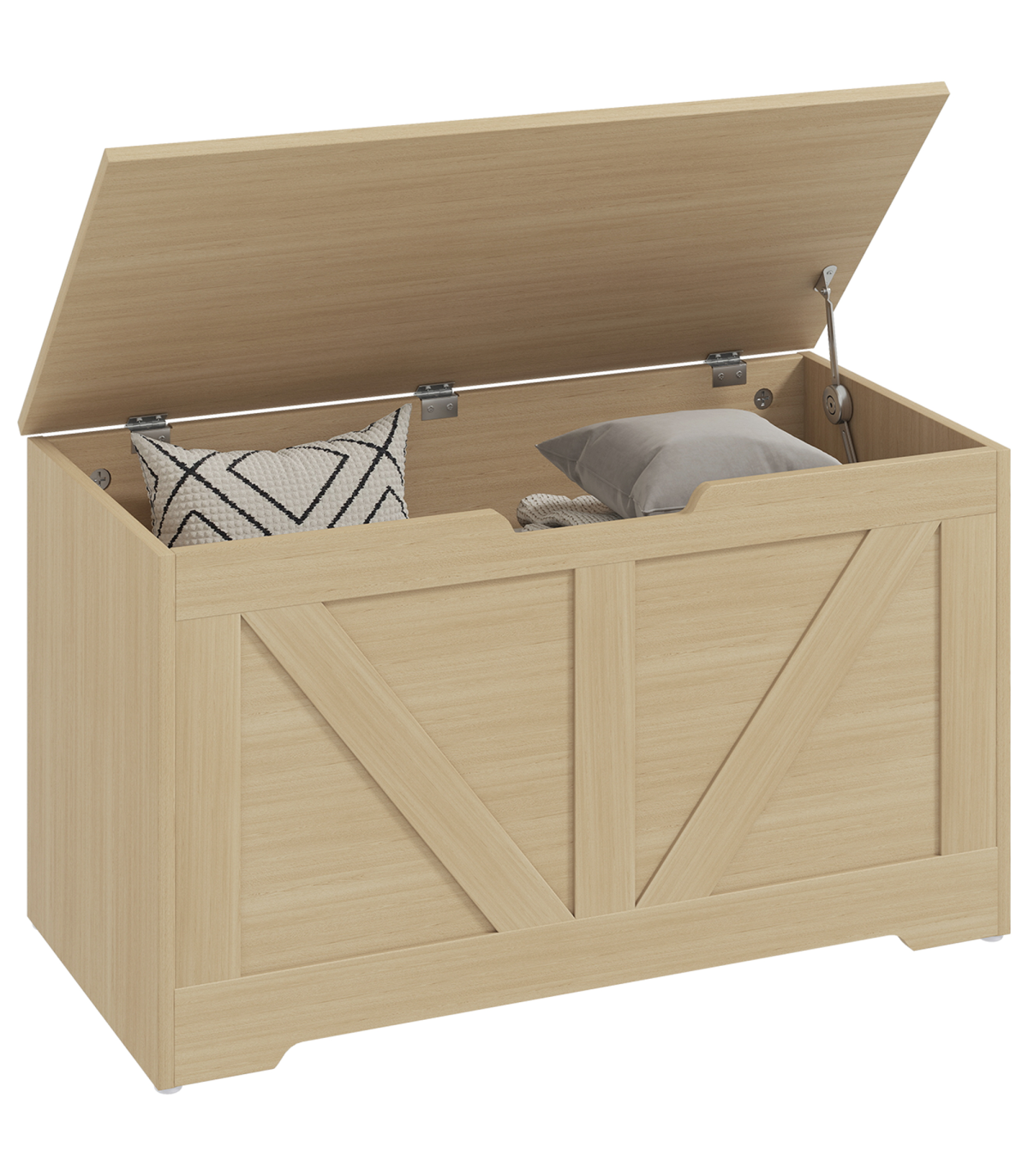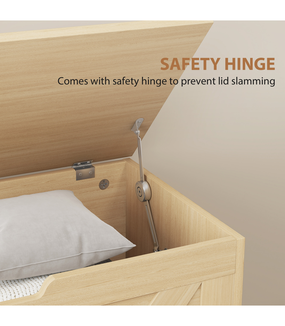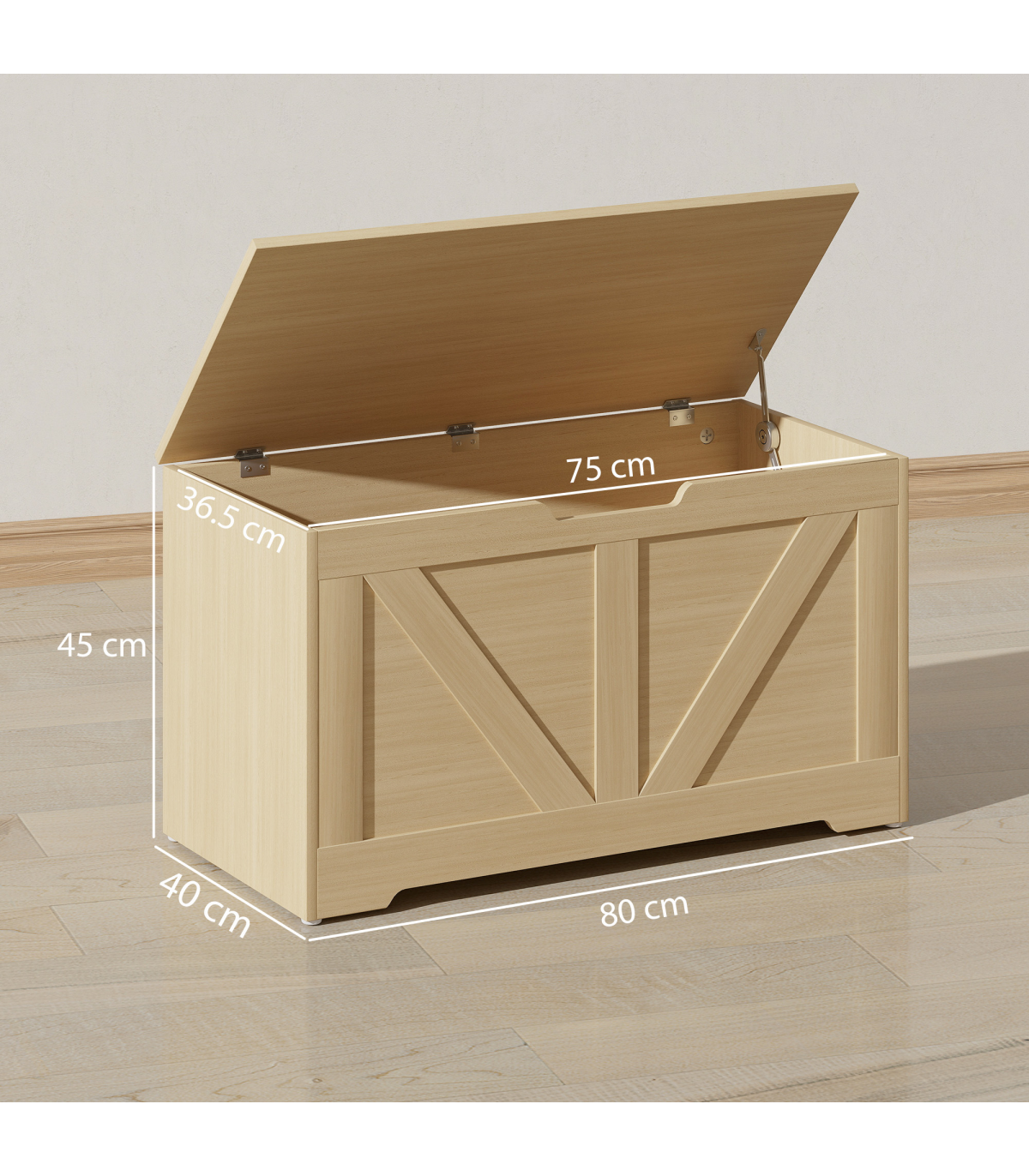 HOMCOM Storage Trunk with 2 Safety Hinges, 80cm, Natural Wood Finish