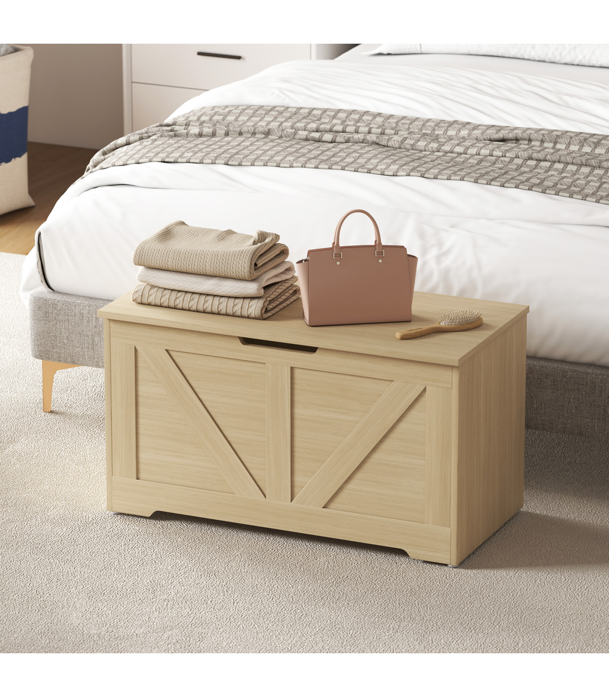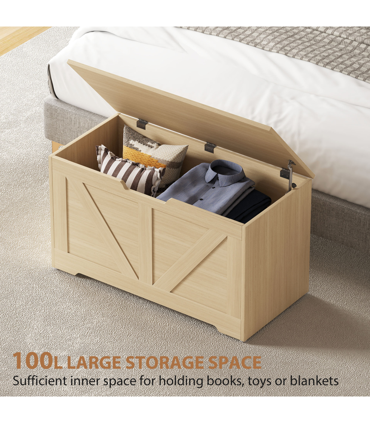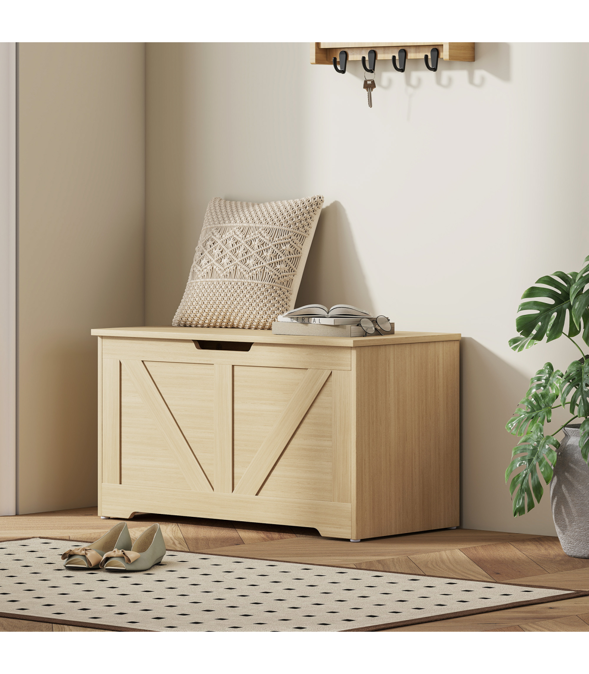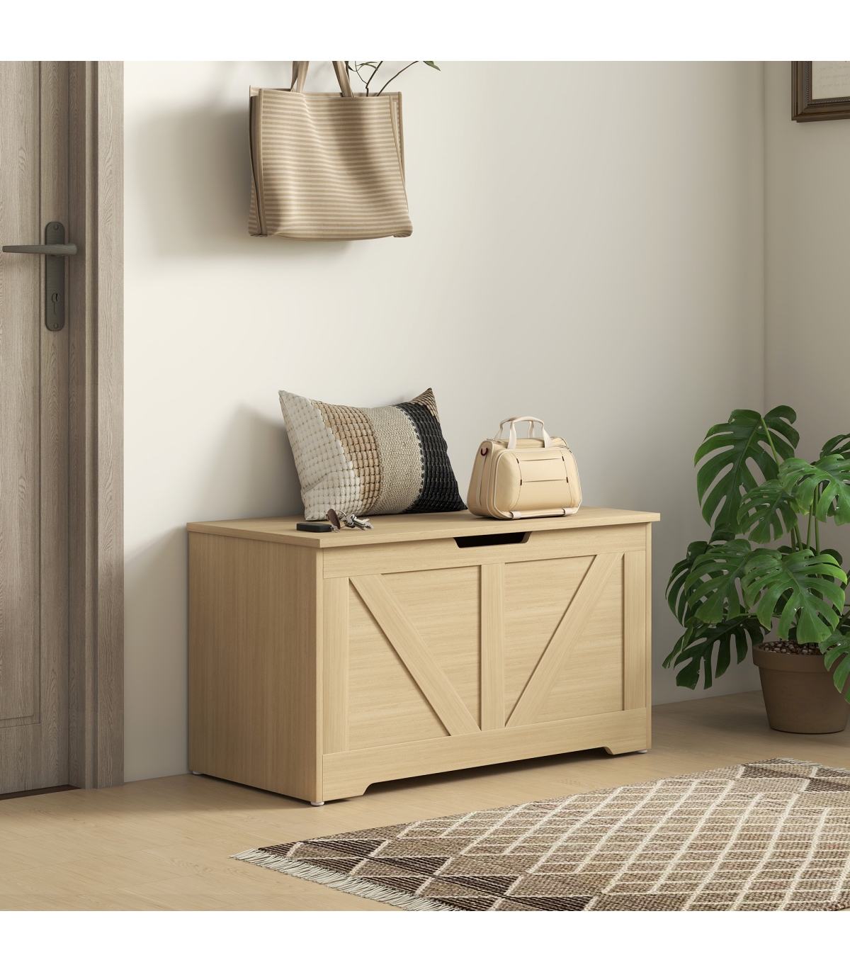 HOMCOM Storage Trunk with 2 Safety Hinges, 80cm, Natural Wood Finish