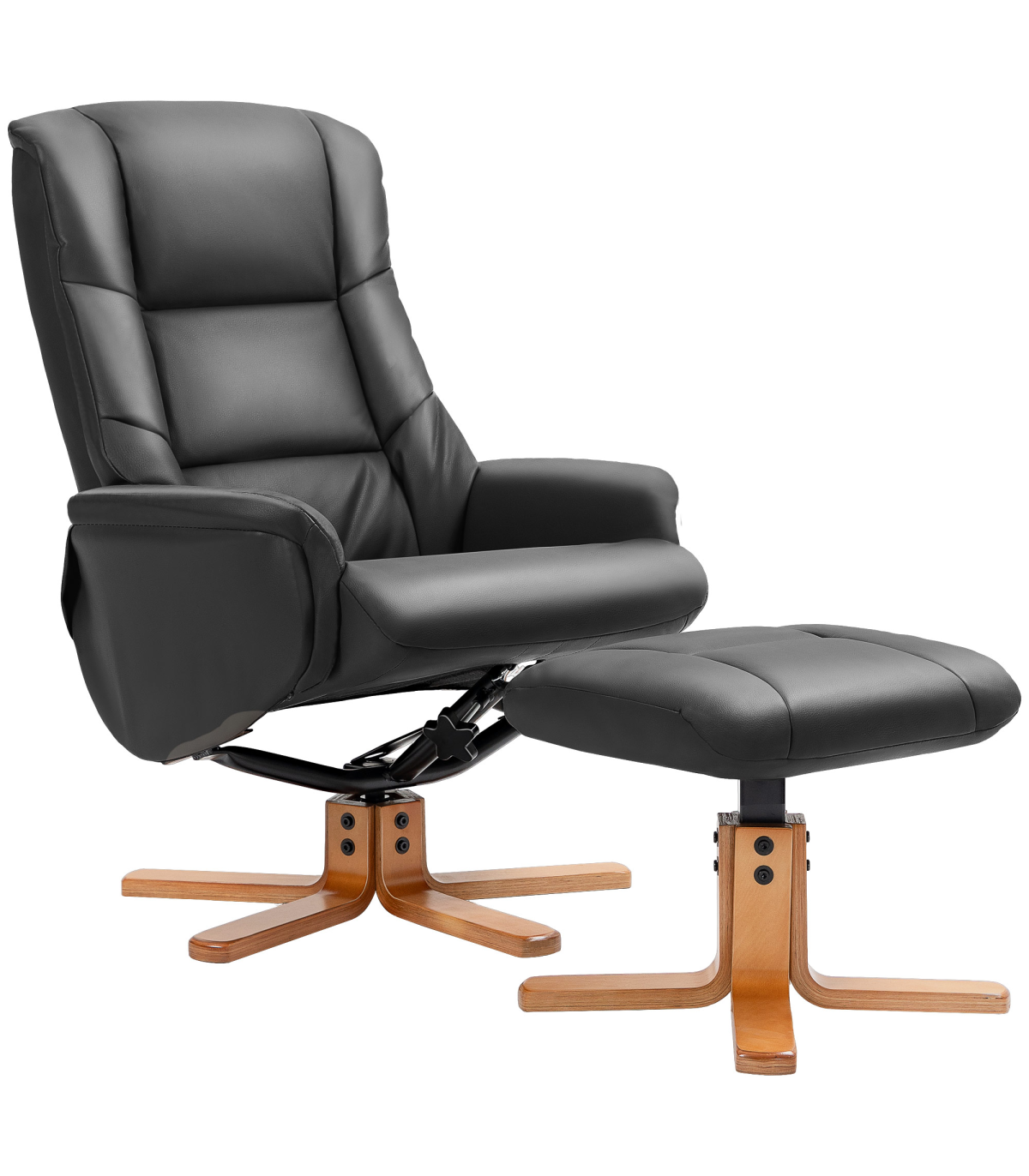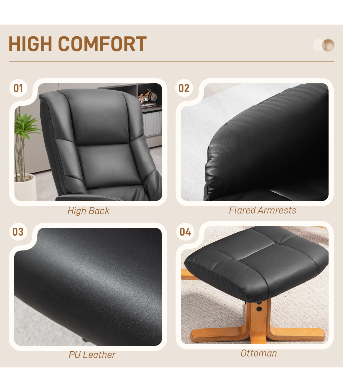 HOMCOM Recliner Armchair with Wood Base, Upholstered Reclining Chair, Black
