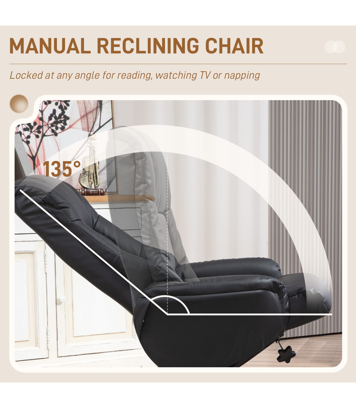 Tired of searching for that great relaxation spot after a long day? Settle into the HOMCOM recliner chair, your personal retreat. Enjoy a gentle rocking motion, prop your feet up on the ottoman and recline up to 135°. This reclining chair, with its easy-to-clean PU leather, offers a serene escape, letting you unwind completely in your own dedicated comfort zone.