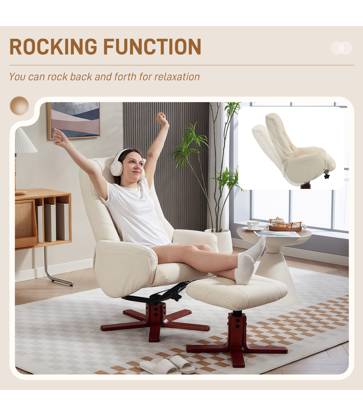 ● Gentle rocking motion with a matching ottoman to elevate your legs