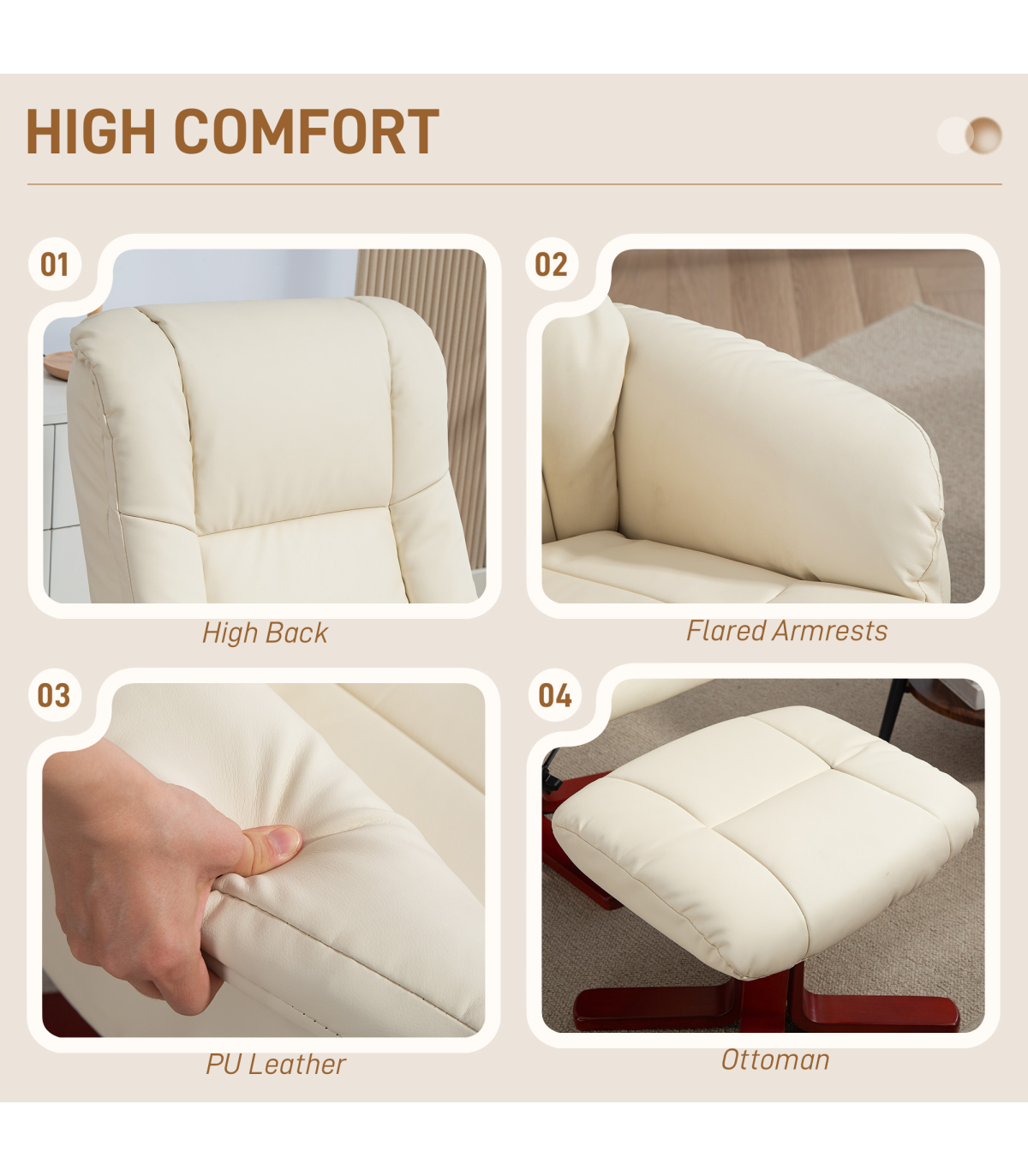 ● Material: PU Leather, Wood, Sponge