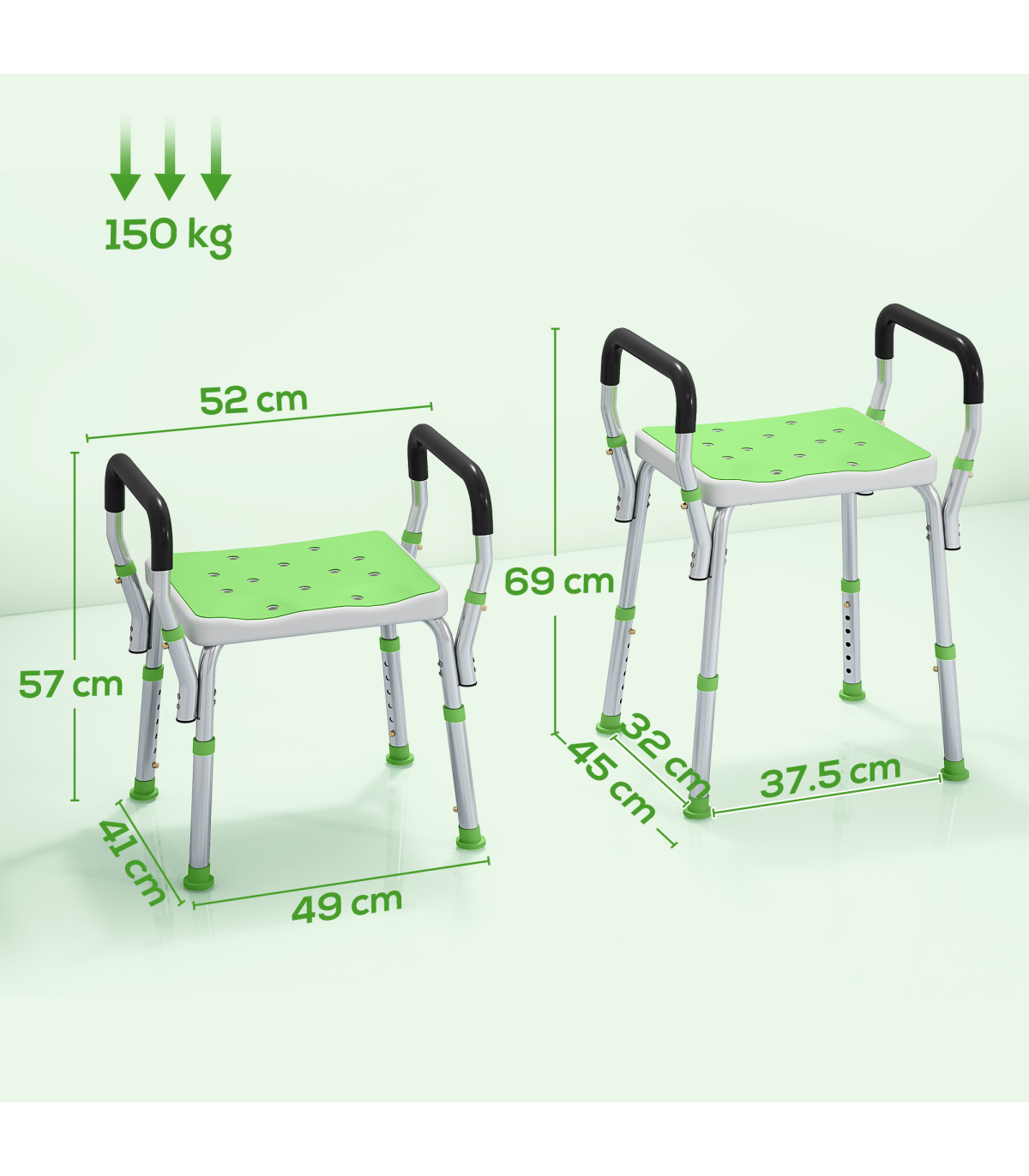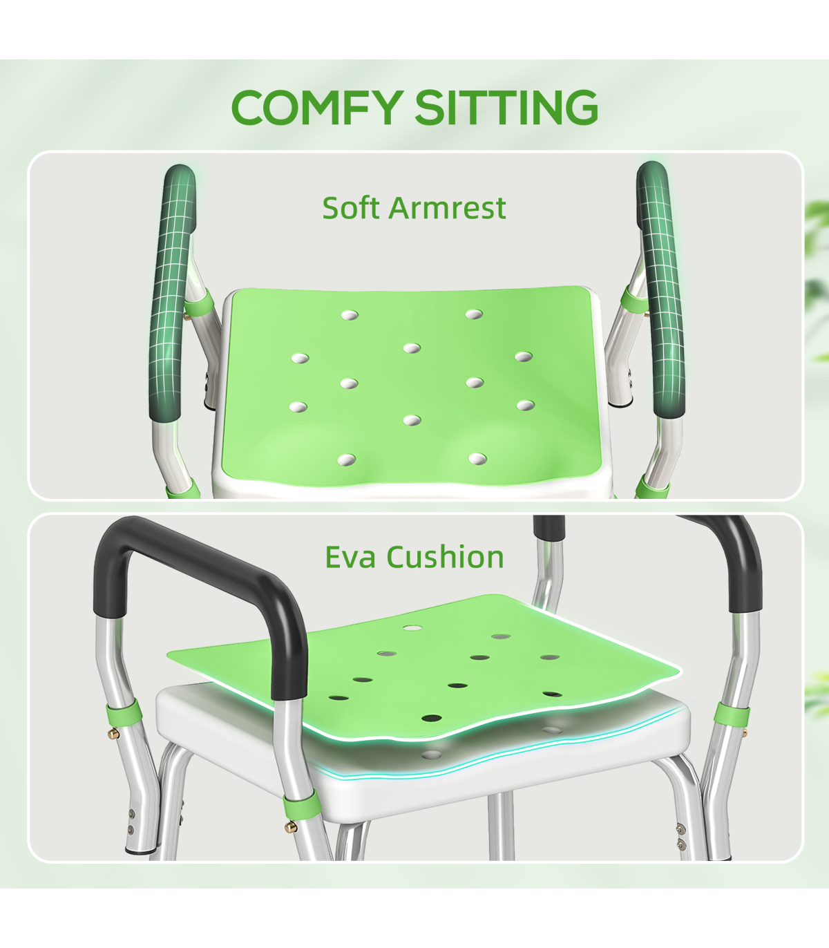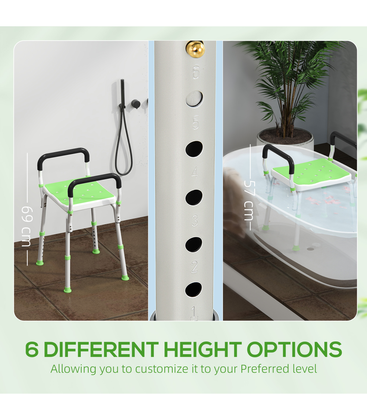 HOMCOM Rust-Free Aluminium Bath Chair with Adjustable Height, Green