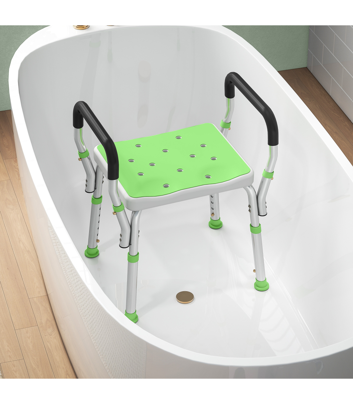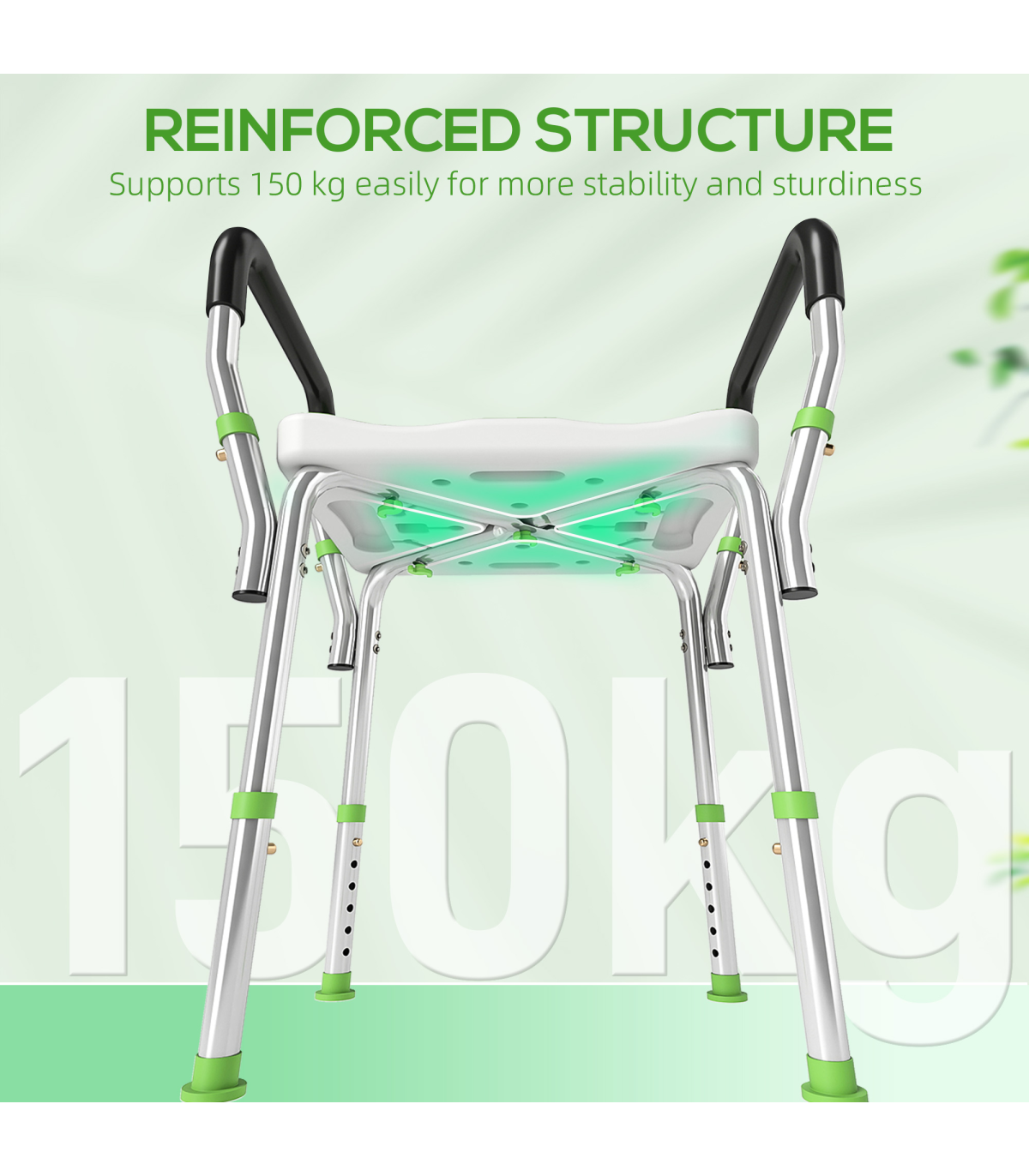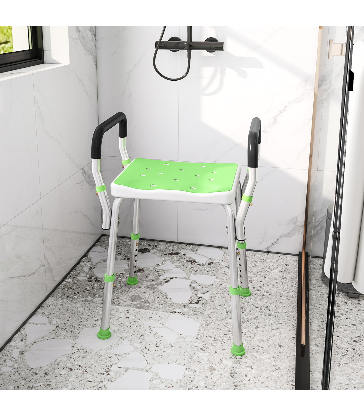 HOMCOM Rust-Free Aluminium Bath Chair with Adjustable Height, Green