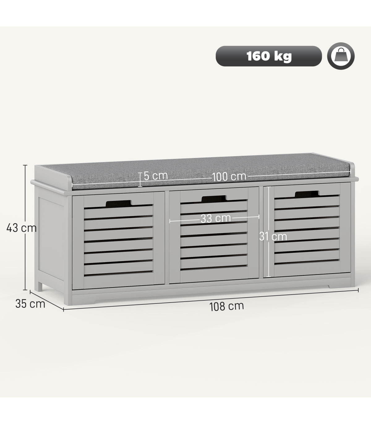 ● Overall Dimension: 43H x 108W x 35D cm