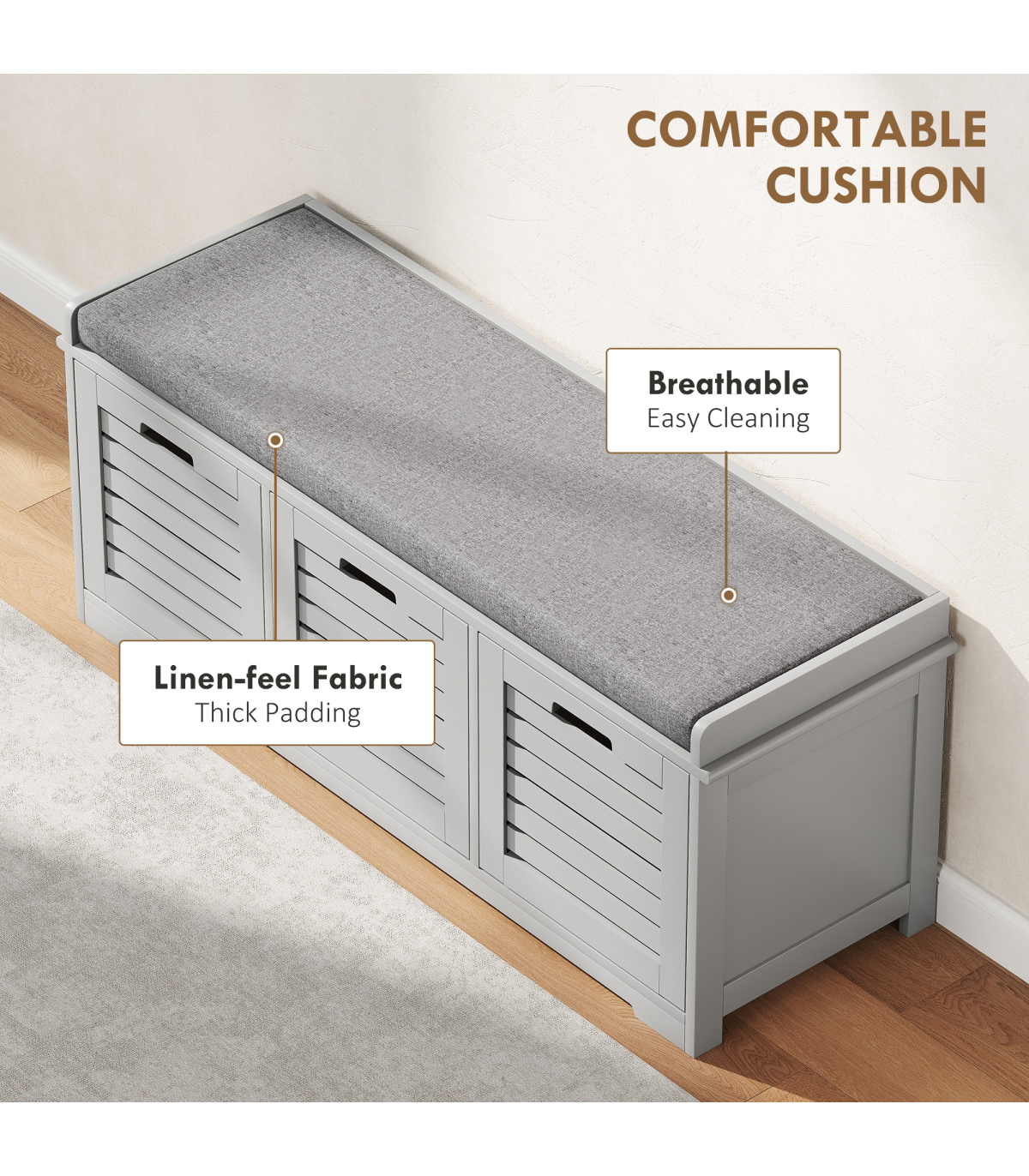 ● Padded top cushion for you to sit comfortably, wrapped in smooth and breathable linen