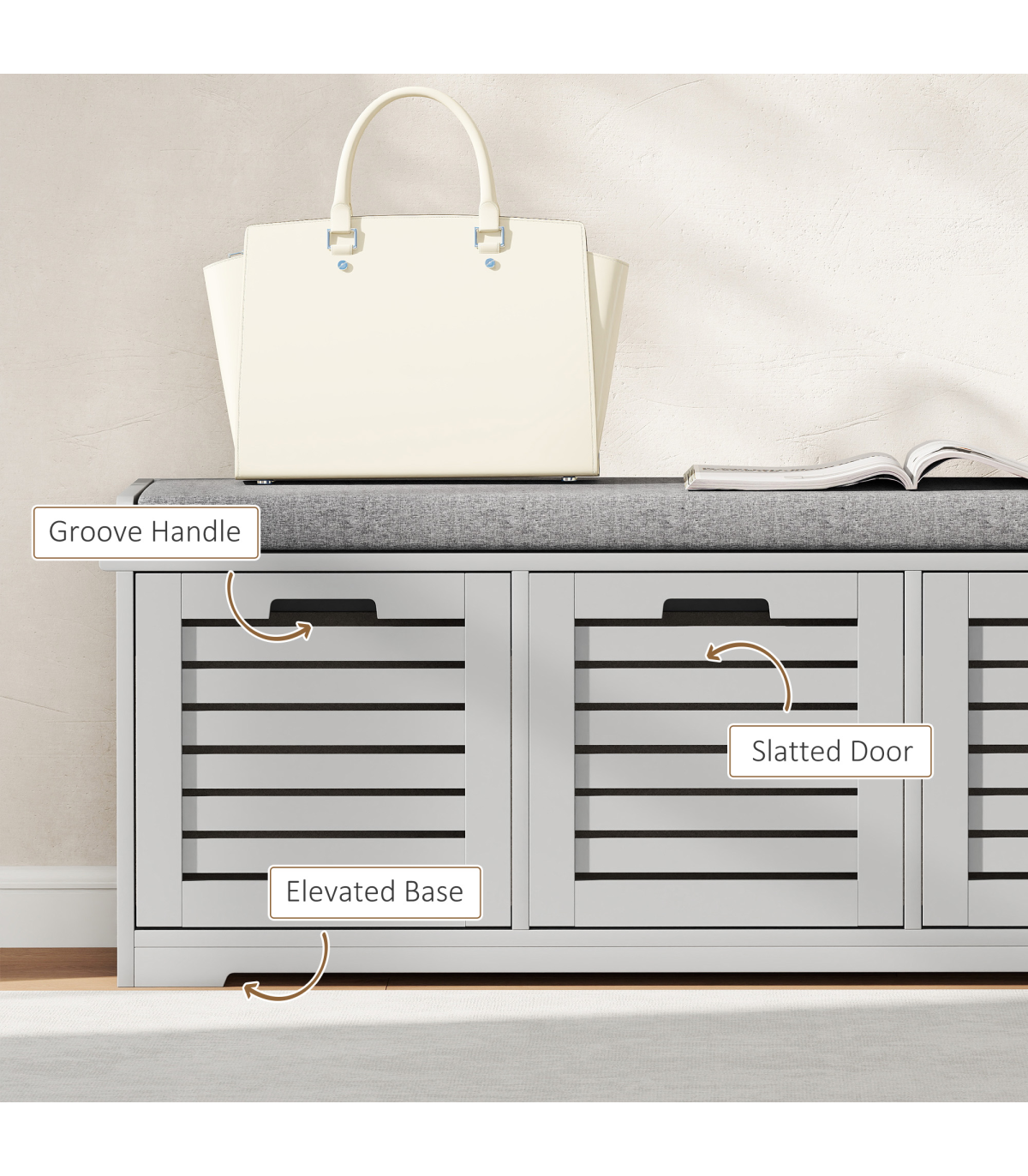 ● Slatted doors allow air to circulate through to keep the inside fresh