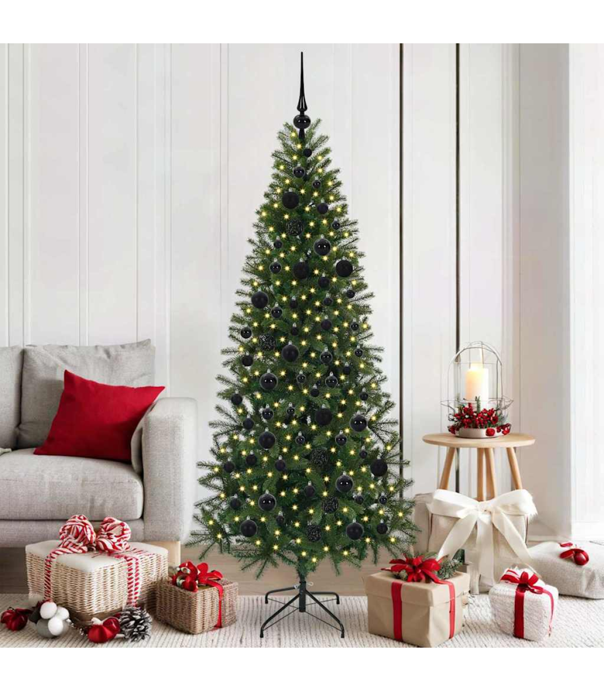 This elegant Artificial Christmas Tree blends modern style with traditional charm, featuring a sleek cone shape that enhances its visual appeal. Designed to be adorned with warm white decorative LED lights, it brings festive charm to any room or terrace, creating a cozy ambiance for the Christmas season. With a theme dedicated to Christmas, this tree is suitable for various holiday settings, providing a delightful focal point for indoor or outdoor decor. Its clean lines and minimal ornamentation complement contemporary living spaces while offering a functional holiday solution for families, event hosts, and festive enthusiasts. PVC and PE Materials: This tree is crafted from premium PE and PVC materials, ensuring both durability and an authentic look. These materials are known for being flame retardant, adding a layer of safety to your holiday setup. The tree maintains a vibrant green appearance without fading, providing an evergreen display that lasts all season. The combination of these materials brings realism to your festive decorations, offering a reliable and attractive solution for annual celebrations. Decorative LED String Lights: Equipped with warm white LED string lights, this tree illuminates your space with a gentle glow. The lights come with 8 flash modes, allowing you to adjust the lighting to fit your mood—whether you’re hosting a festive gathering or enjoying a silent night in. This lighting feature also enhances the tree’s ornamental value, making it a standout piece in your holiday décor. USB Power Source: This tree includes a USB power source, offering flexibility in where it can be displayed indoors or outdoors. The USB feature eliminates the need for traditional power outlets, making setup convenient and practical. It is an ideal choice for modern homes where power access is limited, ensuring the tree can be placed almost anywhere. Versatile Room Placement: Suitable for both indoor and outdoor spaces, this tree offers a versatile solution for holiday decorating. Whether it's in a living room corner, a garden patio, or a terrace, its adaptable size complements various environments and styles. The tree acts as a festive connector among friends and families during yearly seasonal celebrations. Care and Setup Instructions: Assembly requires two individuals for easy setup following the manufacturer’s instructions. Ensure proper placement and stability of the synthetic plastic stand for an upright and secure display throughout the holiday season. Its simple assembly process allows you to focus more on enjoying the festive period. This product is powered by DC 5V, but the certified 5V USB power source is not included. Higher voltage may cause overheating to occur and may result in damage to the device and the potential risk of overheating and fiire.