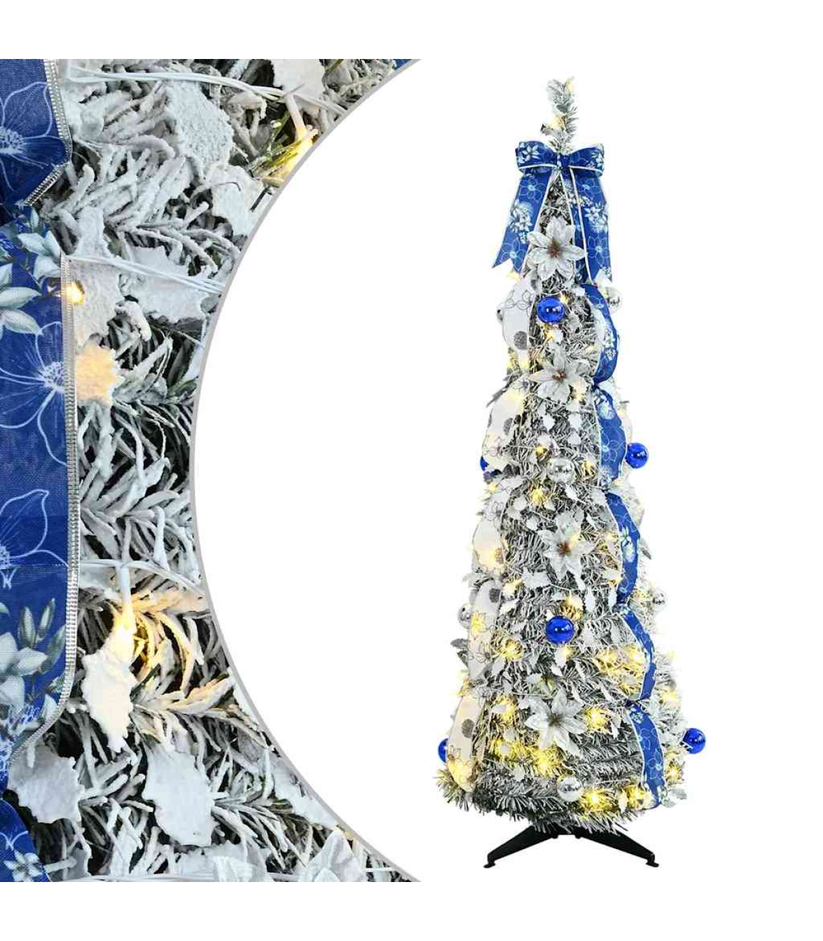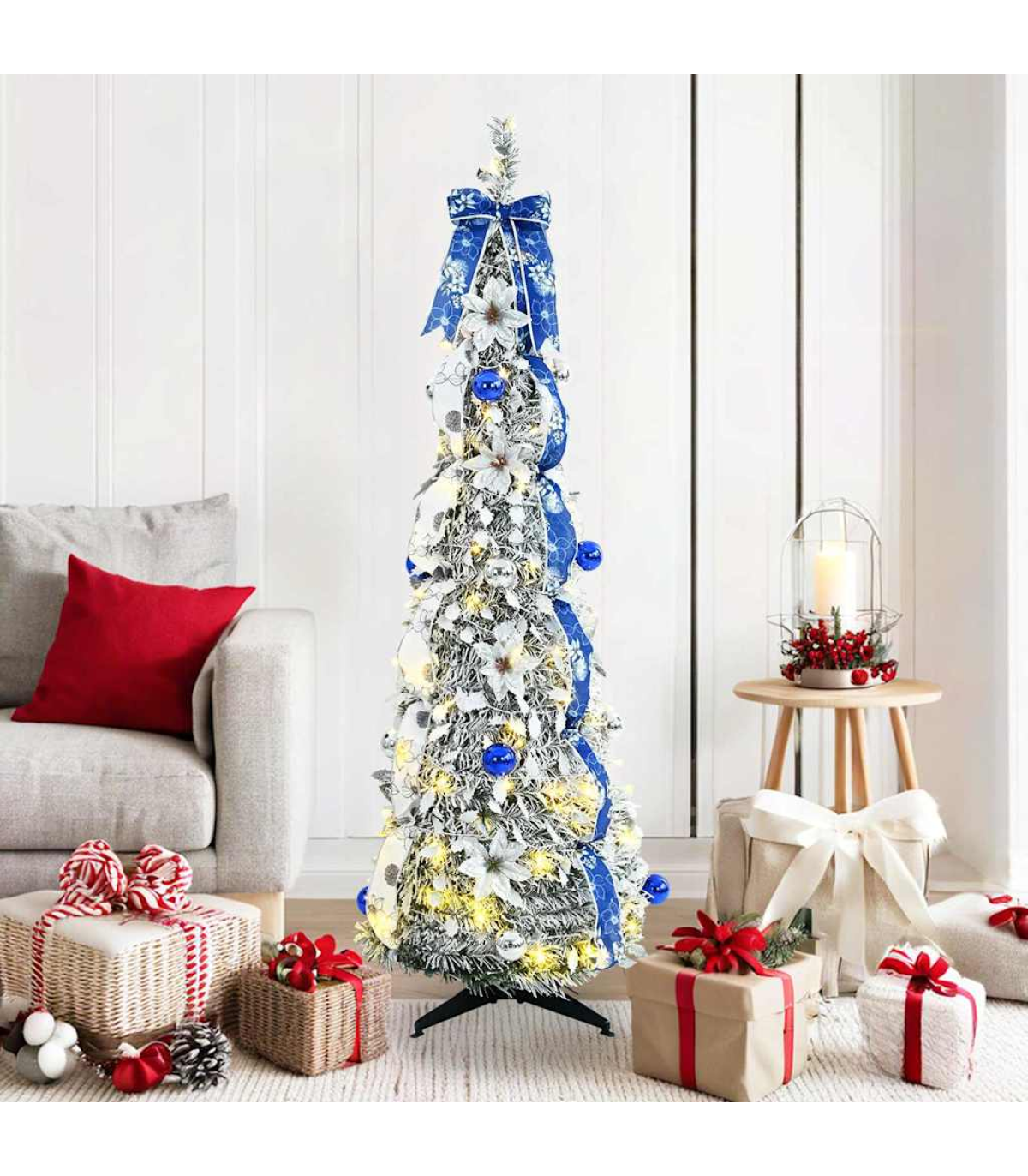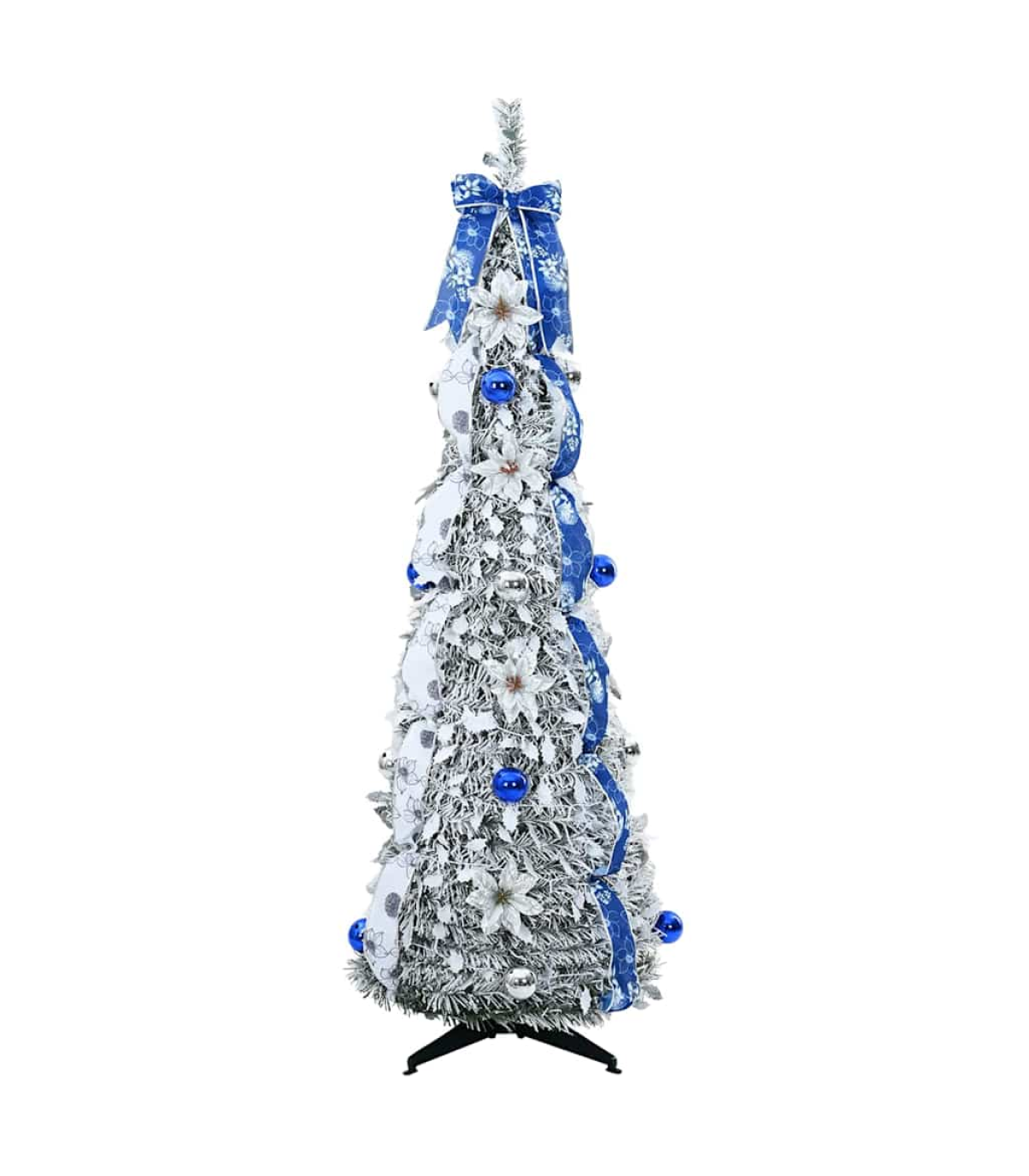 Bring the magic of the holiday season into your home with this Artificial Christmas Tree, designed in the classic Art Deco style. This cone-shaped decorative piece is perfect for living rooms, gardens, and terraces, offering a vibrant green tone with a luxuriant appearance. The tree's 8 LED flash modes bring warmth and festivity, thanks to the integrated decorative string lights and USB power source that make it both stylish and easy to operate. A lovely addition to your holiday décor, evoking the timeless charm of Christmas. Premium Materials: Crafted from durable PVC and sturdy iron, this artificial tree promises longevity and resilience, standing strong and vibrant throughout the holiday season. The PVC material ensures a lush and realistic foliage appearance, while the iron frame supports and stabilizes its structure, making it a dependable centerpiece for seasonal celebrations. Illuminated Charm: Fitted with warm white LED lights and decorative strings, the tree creates an inviting glow. These energy-efficient lights are evenly spaced, offering consistent illumination and setting a serene holiday mood across any room. Conveniently controlled via USB, altering lighting patterns is effortlessly achieved to enhance different times of day or moods. Collapsible Design: Its innovative, fully collapsible construction facilitates painless assembly and disassembly. Approach storage with ease; once the festivities conclude, the tree neatly folds up, making it practical for those with limited storage space. Stylish Features: Inspired by the opulence of Art Deco, this tree's design adds grandeur to its surroundings, lending an air of sophistication. This striking piece allows you to embellish with ribbons and ornaments, inviting your creativity each year. Care Instructions: Maintain its sheen by wiping with a dry cloth. Avoid harsh chemicals to preserve its elegant matte finish. Such simple care guarantees that it maintains its brilliance and grace year after year, prolonging joy and holiday tradition.