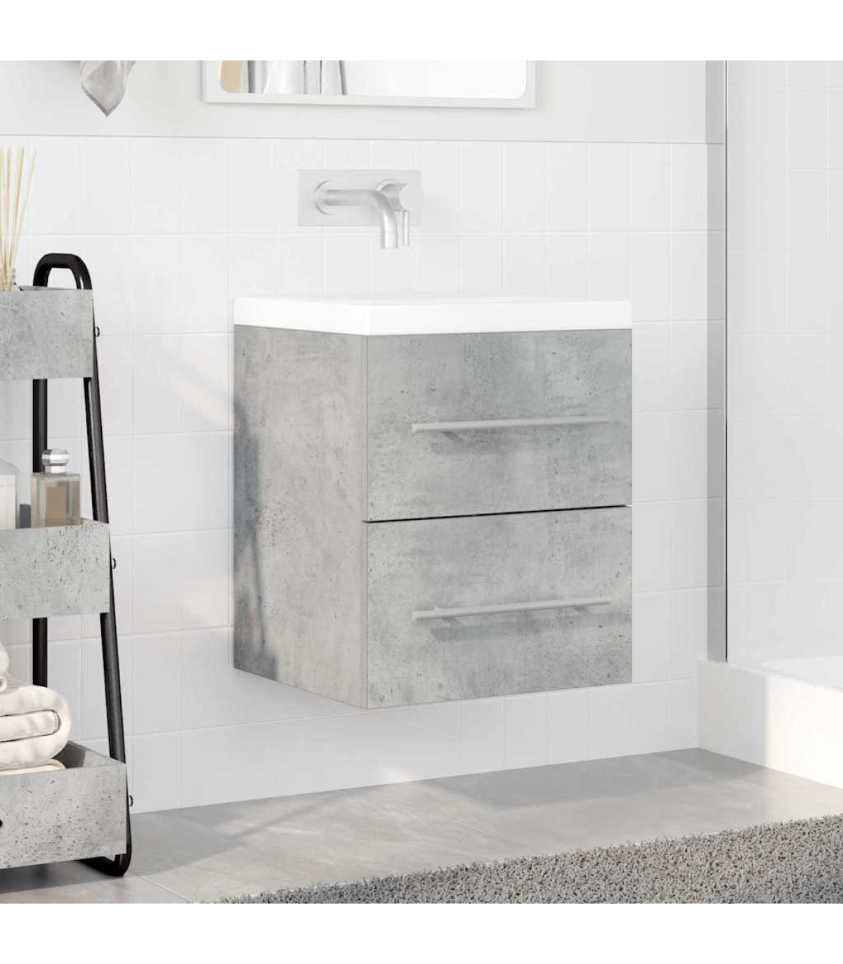 This Wooden Sink Cabinet embodies a rustic aesthetic, blending natural elegance with practical functionality, making it a perfect addition to your bathroom. Its rectangular shape and thoughtful design elements offer ample storage, while enhancing the room's charm with its warm and inviting appearance. Engineered Wood Construction : Crafted from high-quality engineered wood, this cabinet promises reliable long-term use. Its composition ensures stable support while maintaining a lightweight structure –perfect for ease of installation –and reinforces the rustic style that brightens any bathroom. Wall-Mounted Convenience : Eliminate clutter and free up floor space with the cabinet’s wall-mounted design. This layout not only provides a streamlined look but also keeps essential bathroom items easily accessible and neatly stored within arm's reach at all times. Spacious Storage Solution : Featuring multiple drawers equipped with ball-bearing slides, the cabinet offers superior storage capacity. It is an excellent choice for organizing toiletries, towels, cleaning supplies, and more, optimizing your bathroom's space. Handlebar Functionality : Fitted with sleek, matte silver bar handles, this cabinet ensures smooth accessibility to its contents. The handle's clean lines enhance the cabinet's overall appearance matching seamlessly with the rustic motif, combining utility with aesthetic appeal. Effortless Cleaning : Thanks to a durable finished surface, maintenance is made easy. Simply wipe with a damp cloth for swift cleanups, ensuring your cabinet remains pristine with minimal effort, while also increasing its lifespan through diligent care.