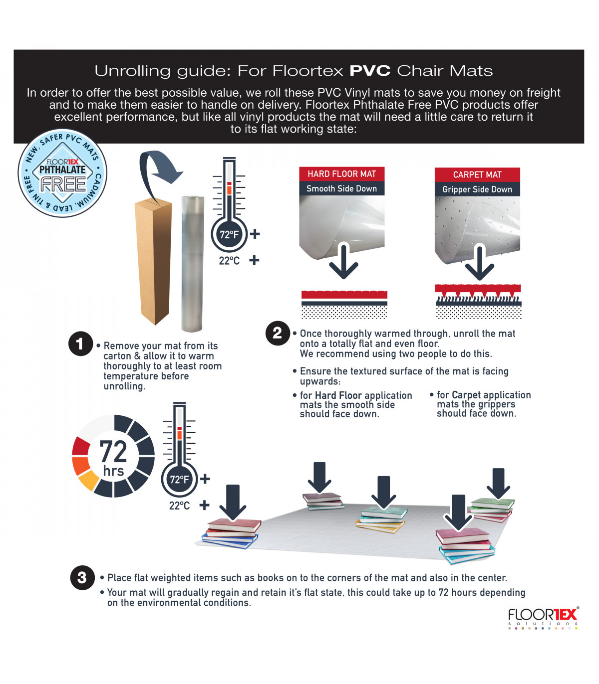 Cleartex Advantagemat chair mats provides a high quality and durable solution for floor protection and ergonomics. Protects your carpet surfaces from office chair casters, general wear, scuffs and spills. Will not crack, chip, break or shatter under normal use and correct application. Free of phthalates, tin, lead, cadmium and BPA for peace of mind when used around children or pets. Limited 20 Year Warranty.