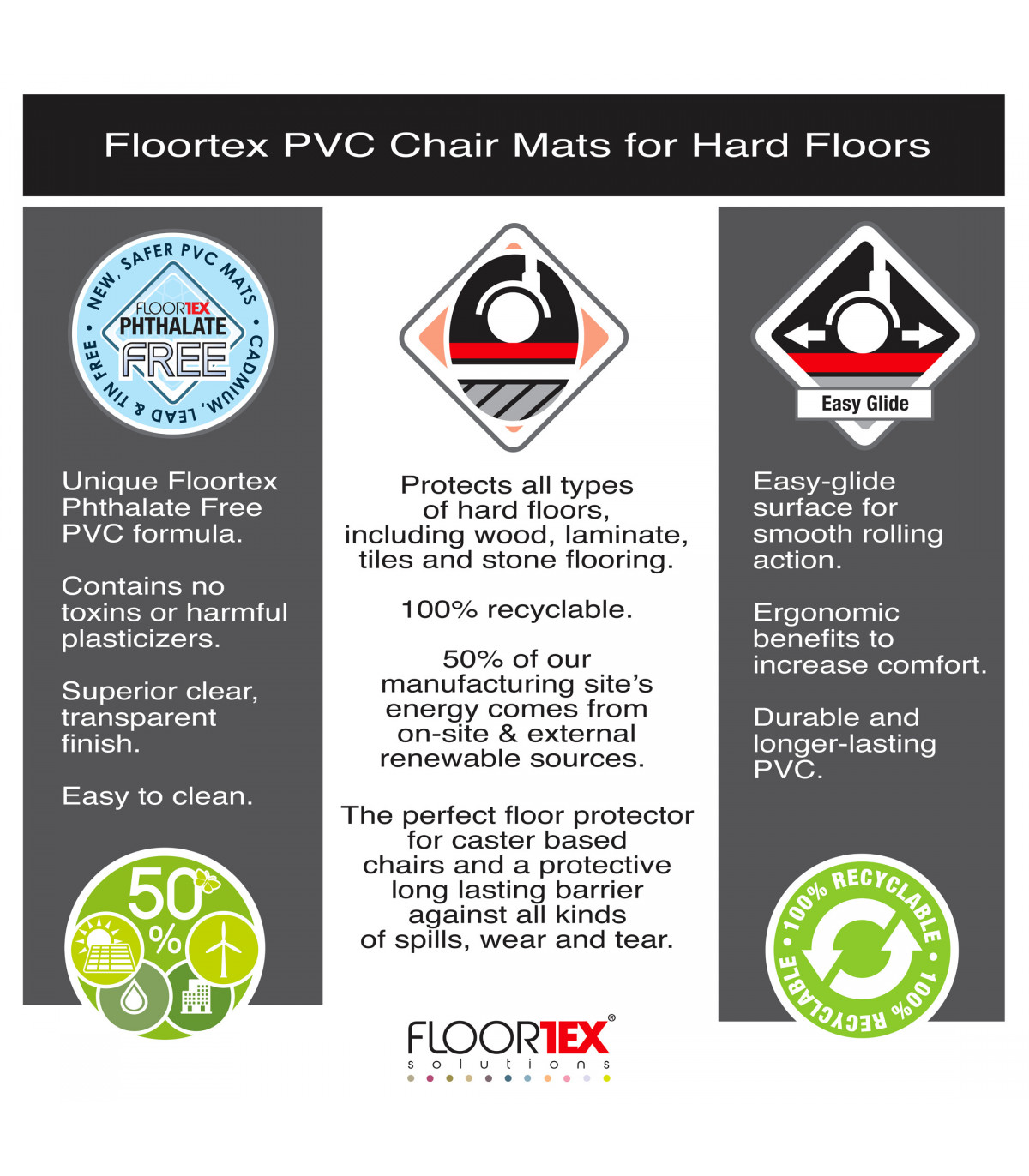 Cleartex Advantagemat chair mats provides a high quality and durable solution for floor protection and ergonomics. Protects your carpet surfaces from office chair casters, general wear, scuffs and spills. Will not crack, chip, break or shatter under normal use and correct application. Free of phthalates, tin, lead, cadmium and BPA for peace of mind when used around children or pets. Limited 20 Year Warranty.