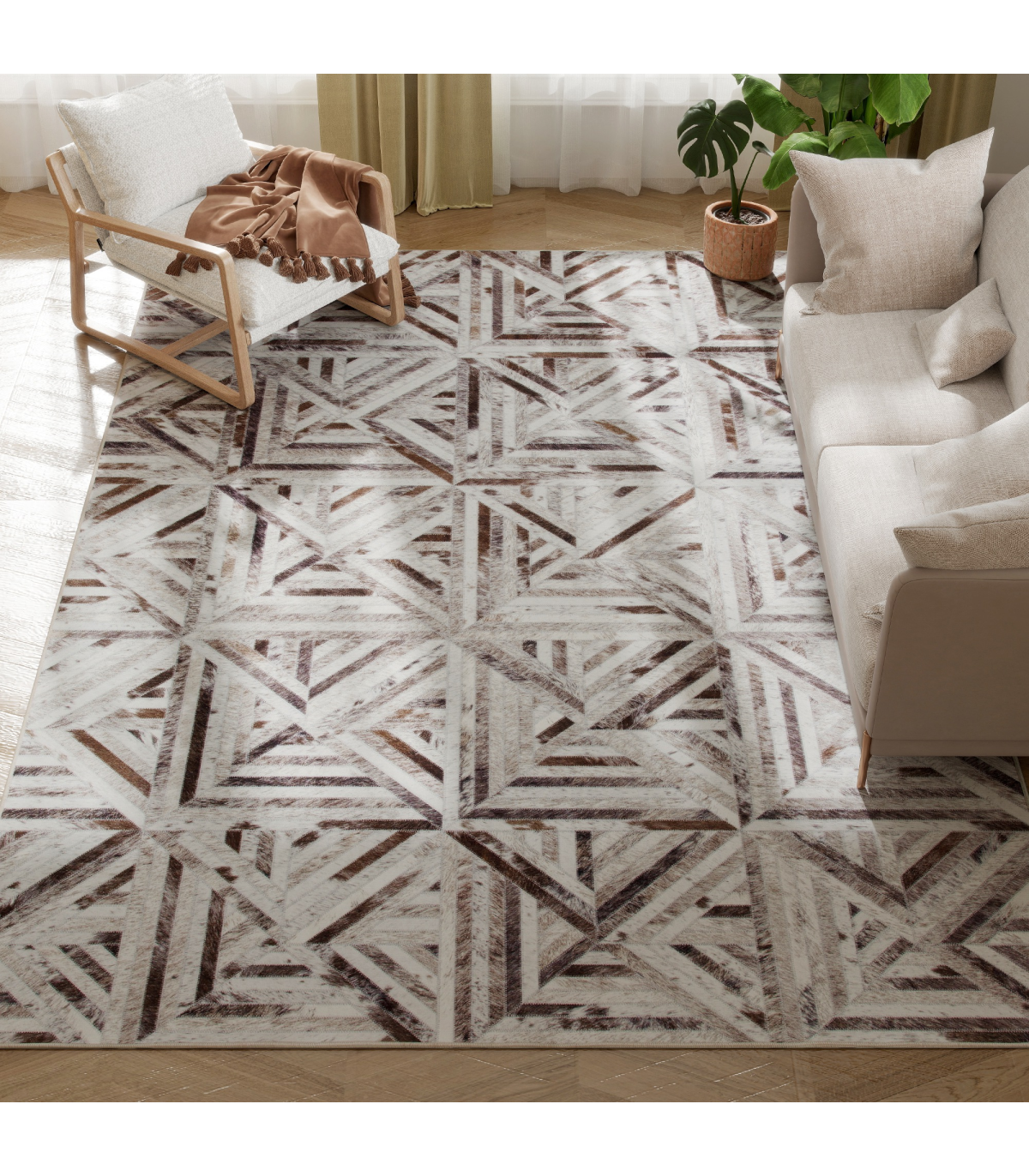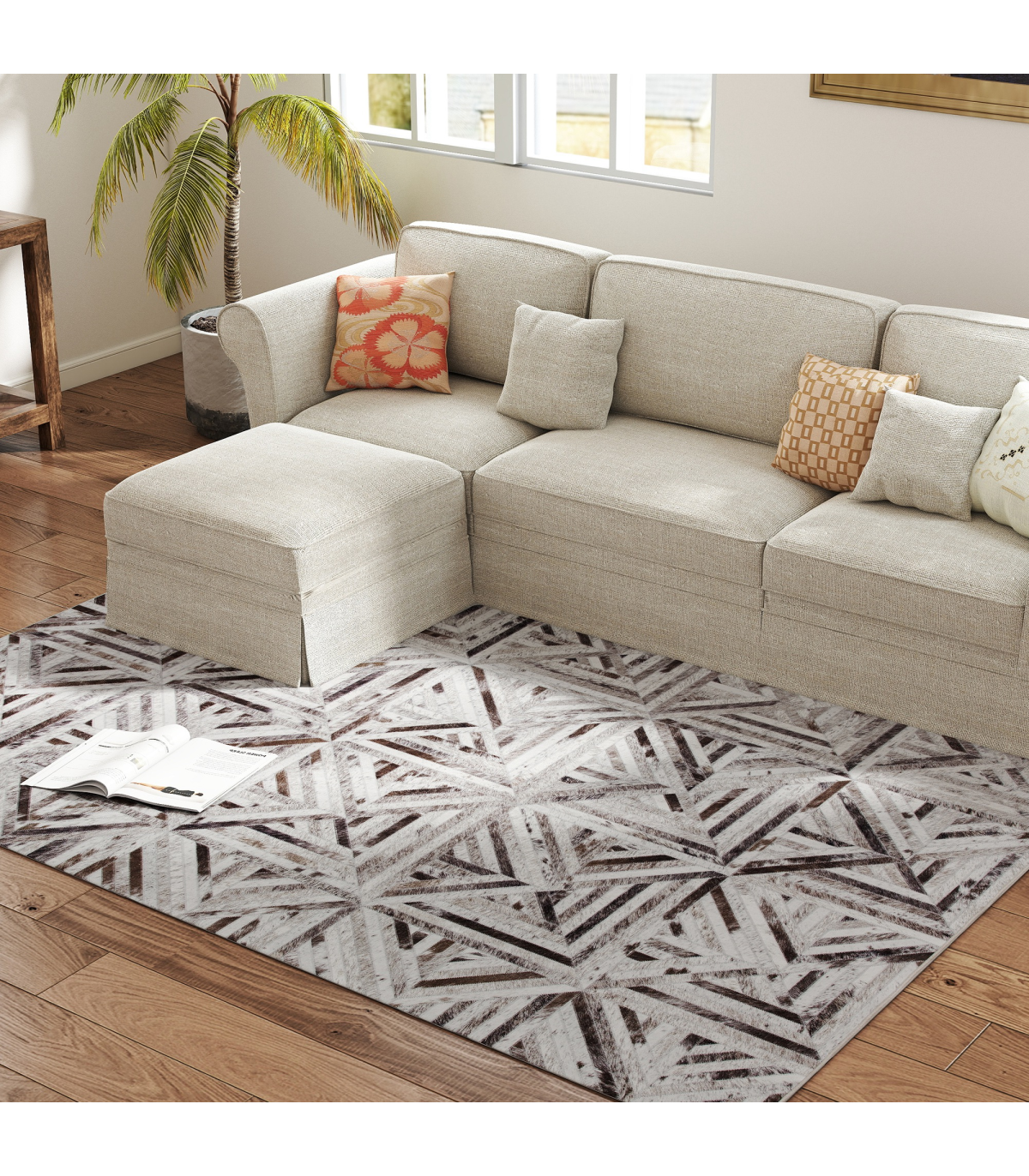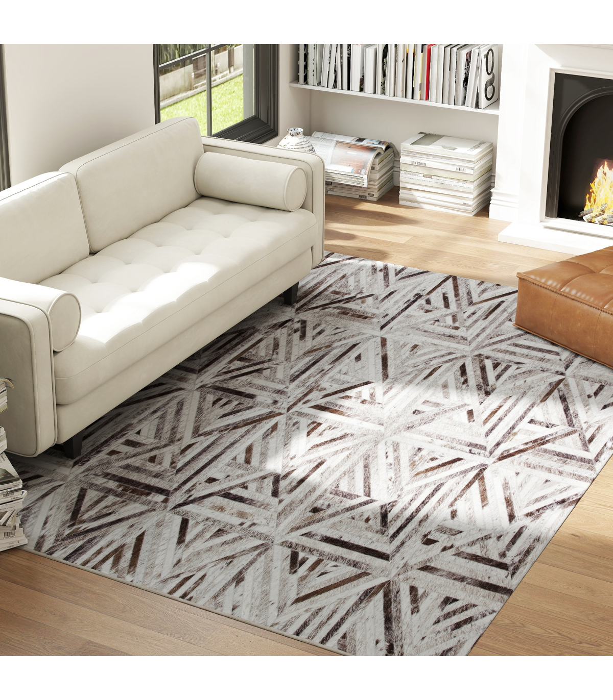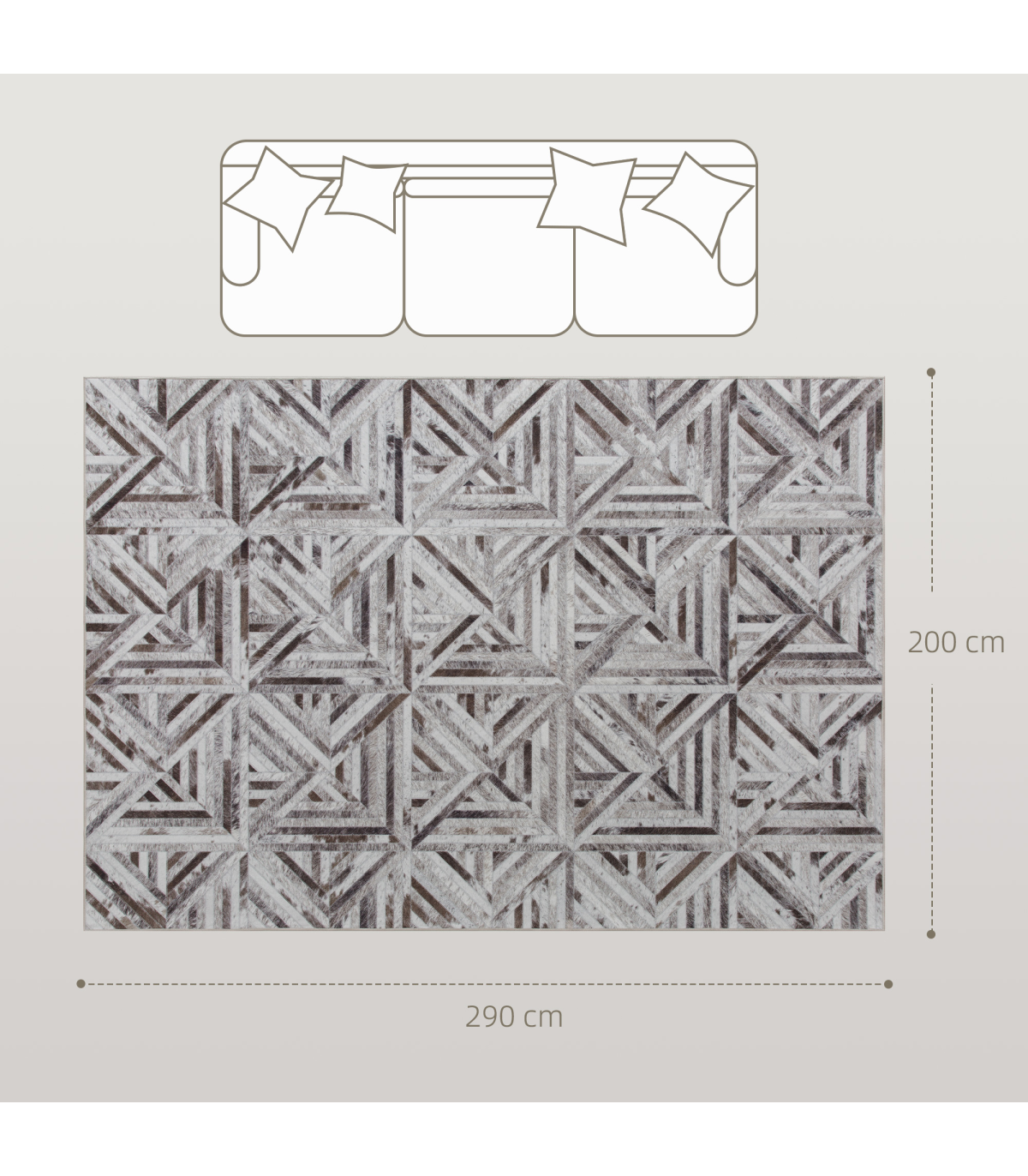 ● Heat transfer printed carpet with faux leather patchwork adds modern luxury and durability