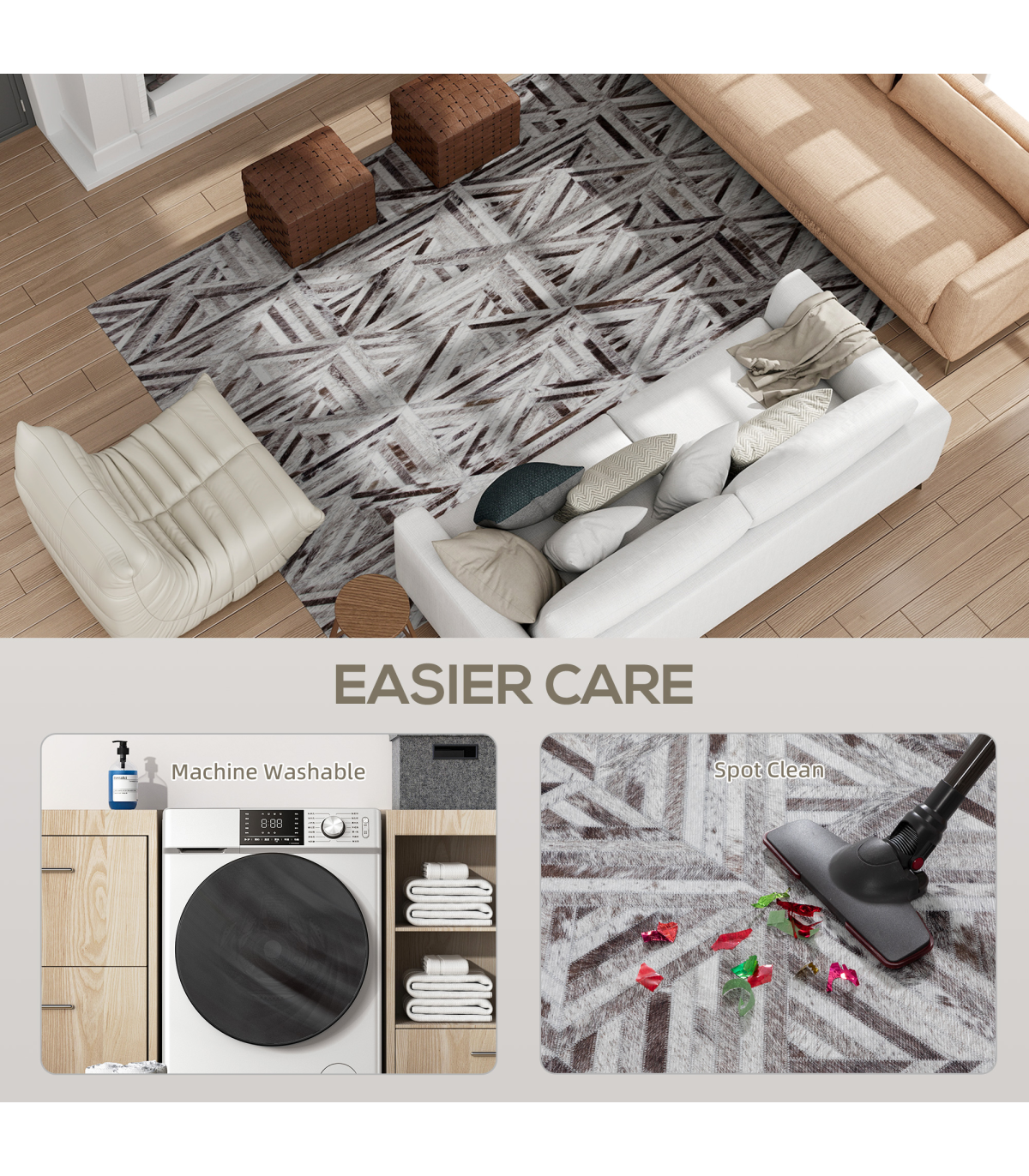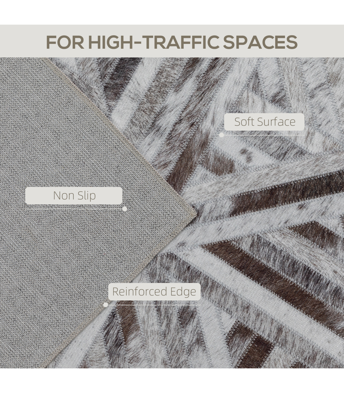 Step into style with the HOMCOM area rug, featuring a chic faux leather patchwork design and plush chenille material. This large rug for living room offers a modern touch and is brilliantly foldable for easy care—machine washable or a quick wipe! Plus, it stays put safely with its non-slip design, suitable for any room needing a splash of luxury.