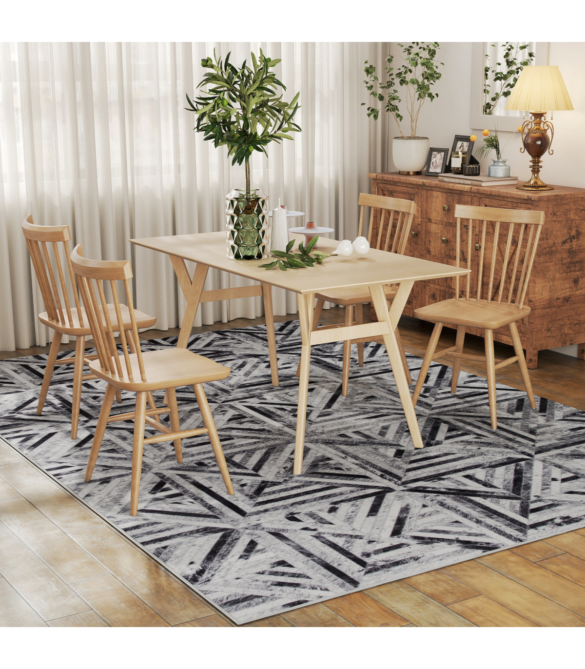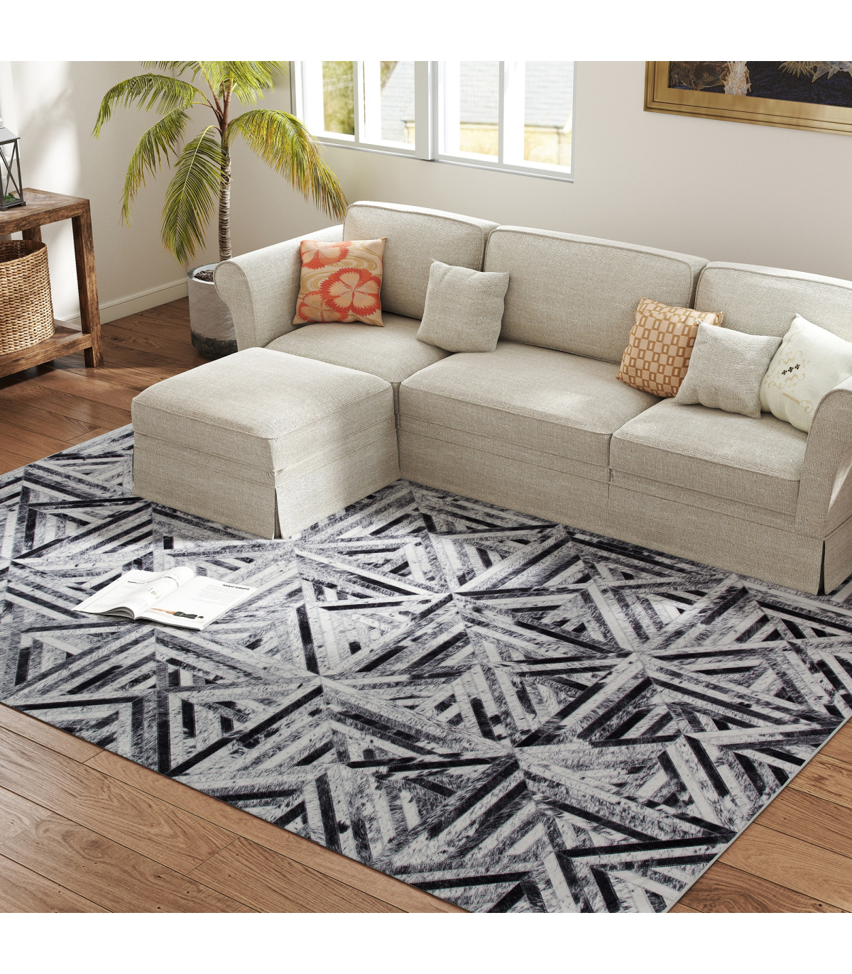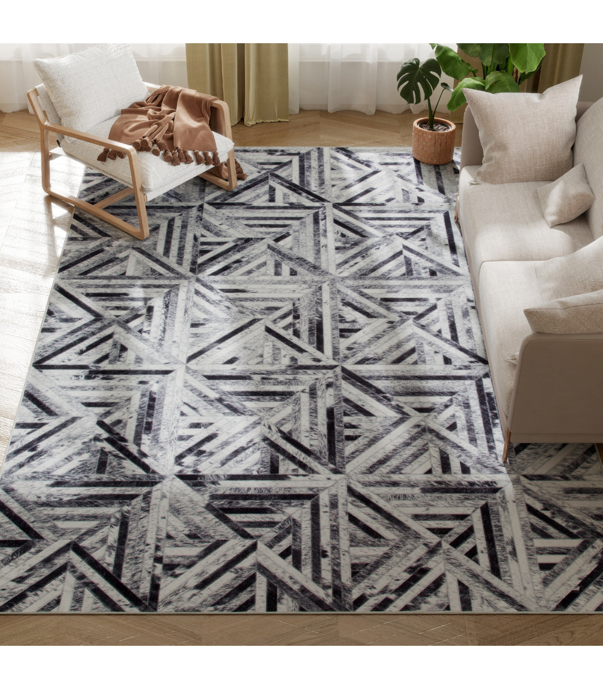 ● Heat transfer printed carpet with faux leather patchwork adds modern luxury and durability