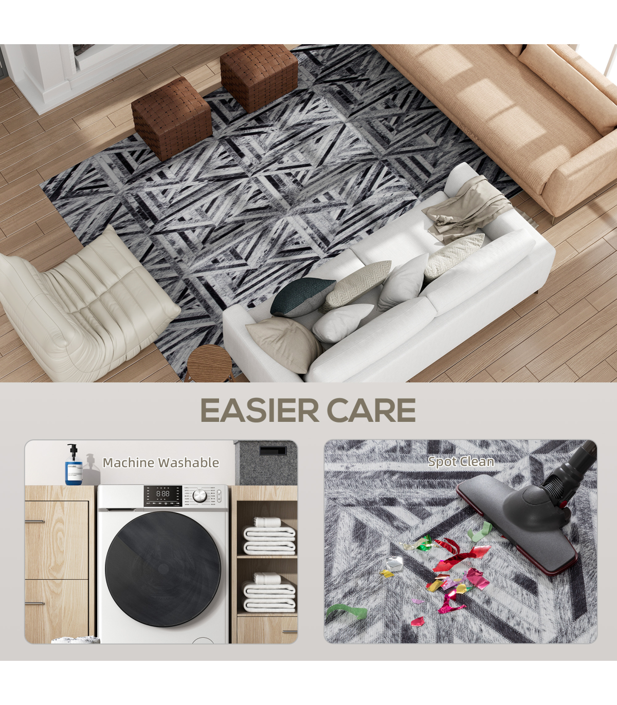 Step into style with the HOMCOM area rug, featuring a chic faux leather patchwork design and plush chenille material. This large rug for living room offers a modern touch and is brilliantly foldable for easy care—machine washable or a quick wipe! Plus, it stays put safely with its non-slip design, suitable for any room needing a splash of luxury.