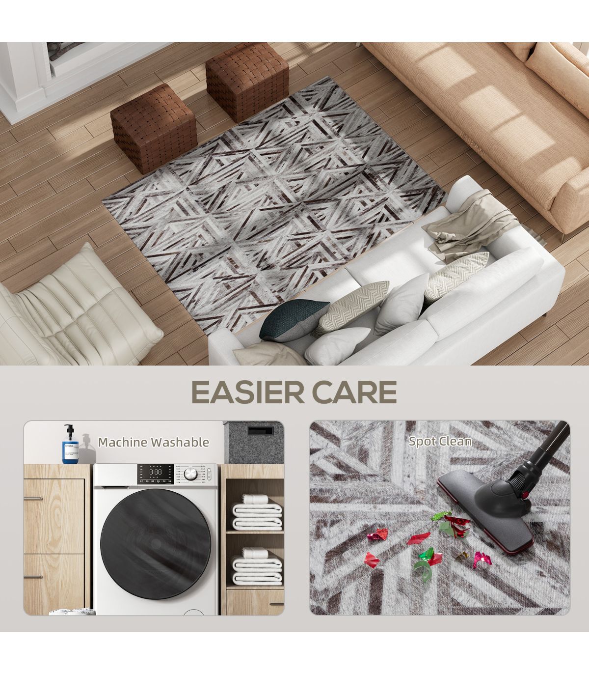 Step into style with the HOMCOM area rug, featuring a chic faux leather patchwork design and plush chenille material. This large rug for living room offers a modern touch and is brilliantly foldable for easy care—machine washable or a quick wipe! Plus, it stays put safely with its non-slip design, suitable for any room needing a splash of luxury.