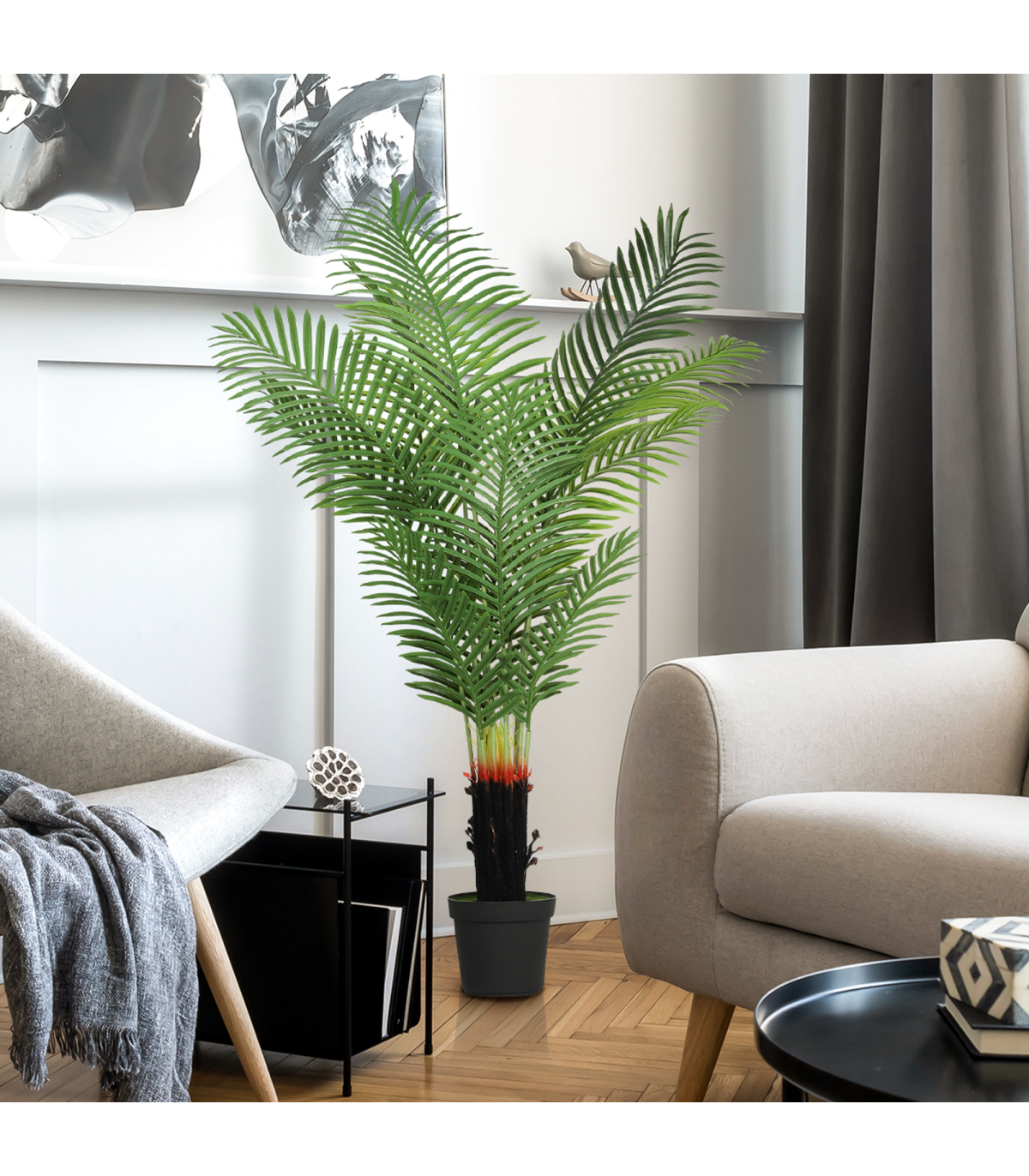 Transform your space into a tropical haven with the HOMCOM artificial areca palm. This indoor plant features lifelike PE leaves and a flocked trunk, creating a lush, realistic look without the upkeep. Suitable for any living room or entryway, it comes in a weighted pot for added stability, ensuring it stays upright and charming all year round.