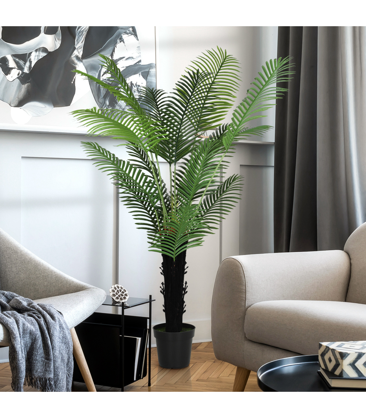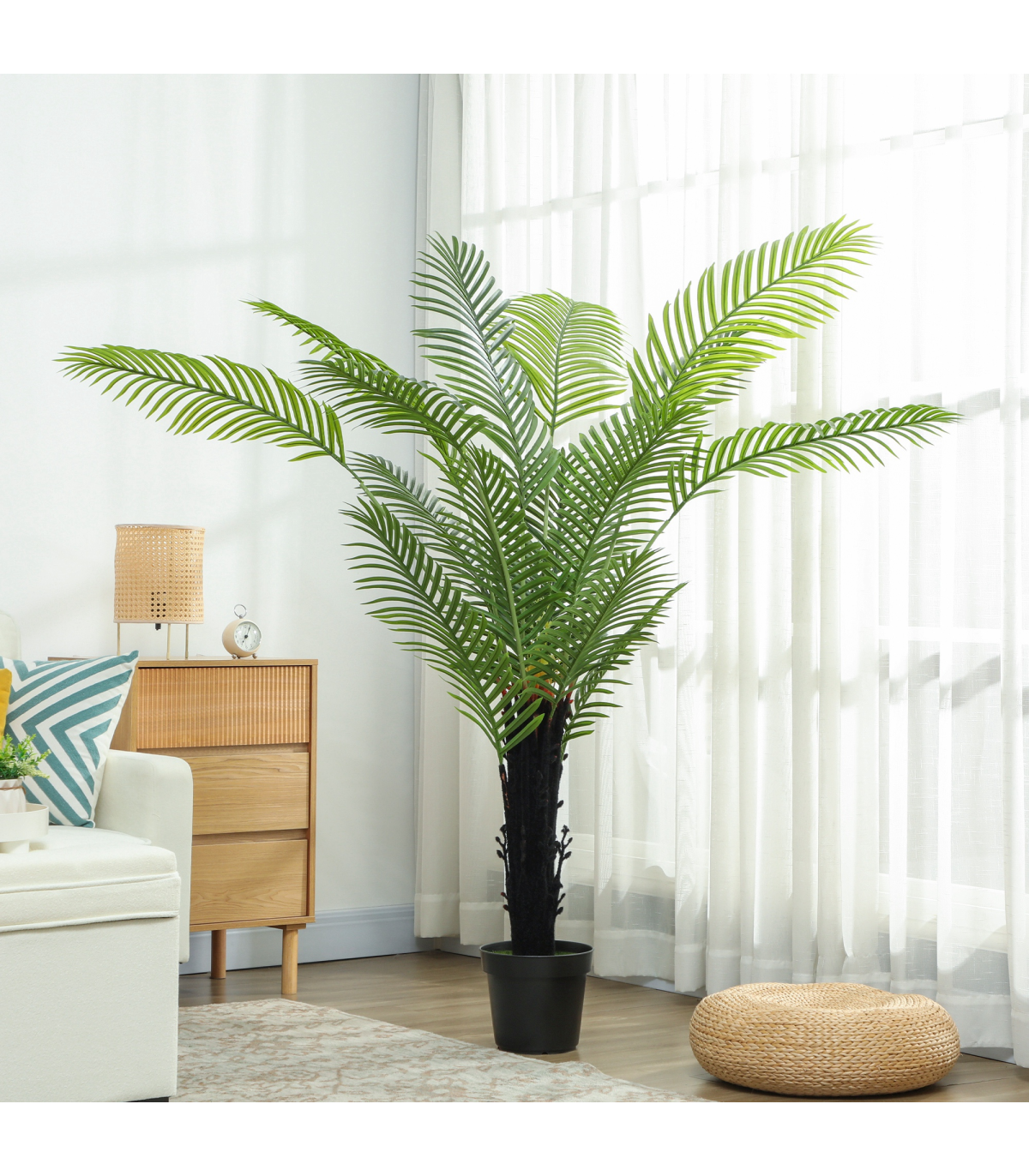 Transform your space into a tropical haven with the HOMCOM artificial areca palm. This indoor plant features lifelike PE leaves and a flocked trunk, creating a lush, realistic look without the upkeep. Suitable for any living room or entryway, it comes in a weighted pot for added stability, ensuring it stays upright and charming all year round.