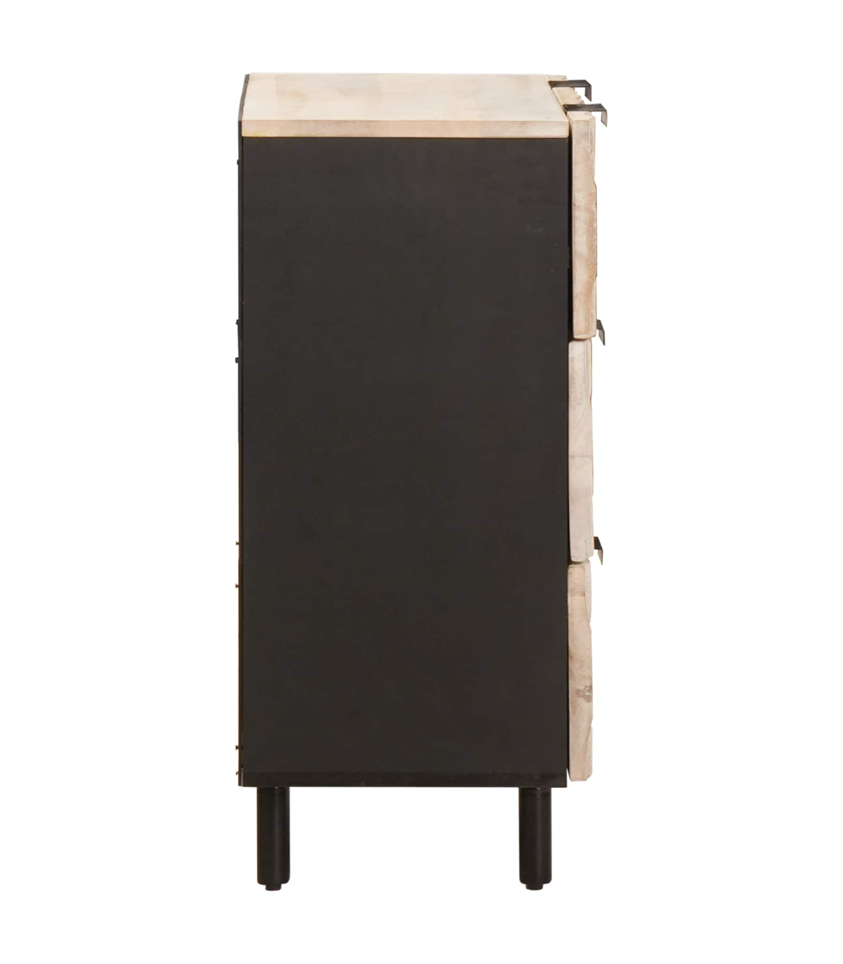 This Modern Sideboard offers a charming blend of minimalist design and functional storage capabilities, perfect for contemporary living rooms or dining spaces. Its sleek rectangular structure complements modern interior aesthetics, providing both aesthetic appeal and practical use. With clean lines and unobtrusive ornamentation, this piece enhances any room's vibe while offering ample storage for dining essentials or decorative items, making it an essential addition to thoughtfully designed homes. Premium Materials: Experience the blend of solid mango wood and engineered wood in the voice of modernity. The use of these materials ensures durability and a sophisticated touch, making the sideboard resilient to everyday challenges. This combination promises longevity while enhancing the aesthetic appeal, allowing you to be at ease with both style and substance. Functional Storage: With multiple compartments and drawers, this sideboard offers a sensible solution for those needing organized space. The structured layout encourages efficient storage of dining essentials, documents, or decorative items, supporting you in maintaining a clutter-free environment. Stylish Handles: Equipped with cup pulls, the design enables easy maneuvering of the drawers, allowing seamless access to stored items. This thoughtful design feature merges practicality with elegance, elevating everyday use of cabinetry into a pleasurable experience. Sturdy Construction: Crafted with square iron legs, this sideboard assures stability and reliability. The robust framework creates a strong foundation, ensuring minimal wobble and firm placement in dynamic home settings. Know that the furniture you rely on is steadfast and dependable. Simple Assembly Required: Installing your new sideboard is straightforward—requiring only a screwdriver and the assistance of a friend. The design has been crafted for ease of assembly, with this consideration ensuring you start enjoying your purchase as soon as possible, without unnecessary delays.
