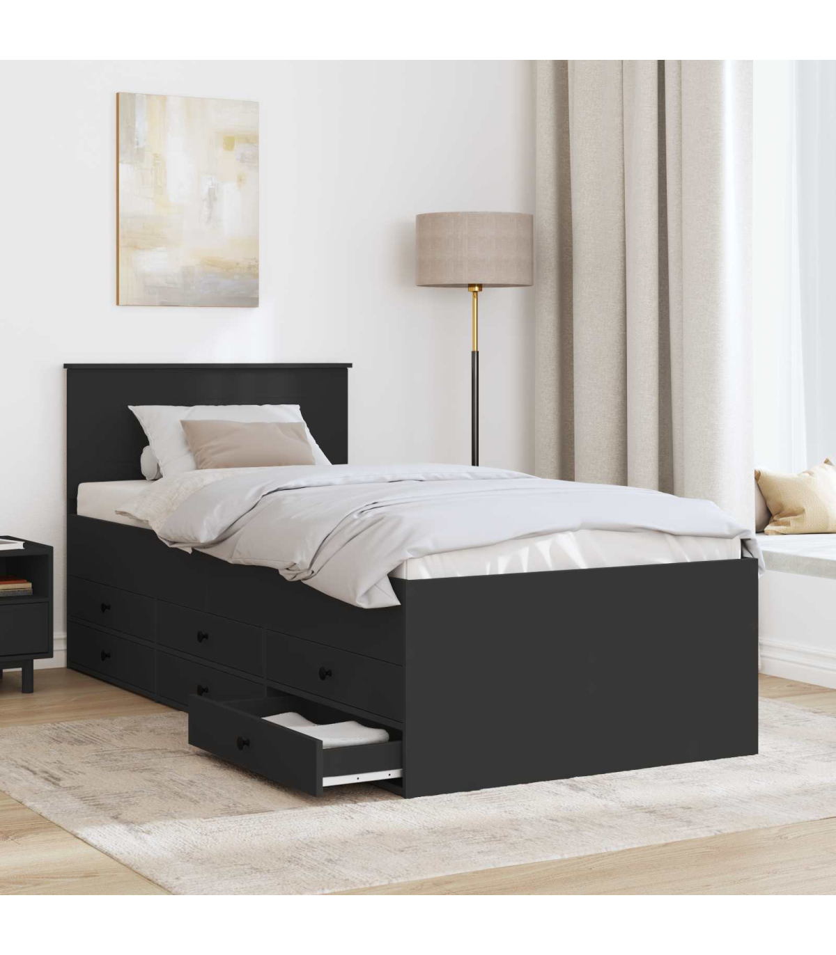 This Modern Storage Daybed brings a blend of style and functionality to any bedroom setup. Integrating seamless design elements, it caters to the needs of small spaces while accentuating contemporary aesthetics. Its versatile configuration allows for both daytime seating and nighttime sleeping, making it an ideal choice for guest rooms or multifunctional living areas. The elegantly engineered wood finish adds a touch of sophistication, ensuring the daybed fits right into a variety of decor themes, promising a chic and cozy environment. When utilized, this piece transforms into a central hub of comfort and usability, supported by its ample storage provisions. Materials: The daybed is primarily crafted from engineered wood, a choice lauded for its resilience and versatile appearance. This material endows the structure with remarkable stability, ensuring durability over prolonged use, even in high-traffic zones. Engineered wood provides the benefit of a refined, sophisticated look that harmonizes with modern interior aesthetics while offering easy maintenance. Included Components: Integrated into this daybed is an adjustable footboard for enhanced ergonomic support. Its fixed slatted frame offers a stable surface for seating or sleeping. The frame's robust engineering ensures consistent performance, making it a reliable addition to your home. A thoughtfully designed headboard further complements the unit, enhancing its overall functionality and user comfort. Features /Function /Design: The standout feature of this daybed is its flexibility. Equipped with four manual adjustment levels, it effortlessly adapts to varied preferences, offering choice in height and position. The bed's engineered wood structure is fortified with a water-resistant finish, effectively safeguarding against spills and moisture, making it a practical choice for everyday living. Recommended Uses: Whether positioned in a bedroom or living area, the daybed serves multiple roles, either as a guest sleeper or as a comfortable lounging spot. Its blend of seating and storage solutions enables efficient utilization in compact spaces, making it ideal for urban living environments. Care &Maintenance: Easy maintenance ensures this daybed retains its polished look over time. Routine cleaning involves wiping down with a damp cloth to remove dust and light soiling. This simple regimen keeps the daybed looking fresh and extends its lifespan, guaranteeing ongoing satisfaction.